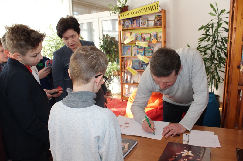 Одним із запитань, яке цікавило дітей було про те, як виникла ідея написати книгу про шахи, на що гість поставив зустрічне питання: «А що таке ідея?». «Ідея – і де я?» – розібрав письменник слово на склади та відповів, що у кожної людини приходить час, коли запитуєш себе де ти є і що ти зробив, тому з’являється ідея – бажання поділитися своїми знаннями з іншими.