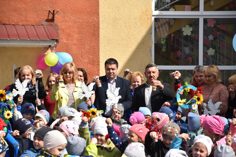 Захід завершився флешмобом “Дзвін миру”, що направлений на підтримку миру у нашій державі. До нього долучилися учасники разом із дітками та представниками влади. Разом вони зайнялися посадкою квітів на території ДНЗ № 18. Висадили близько 30-ти кущів троянд та петуній.