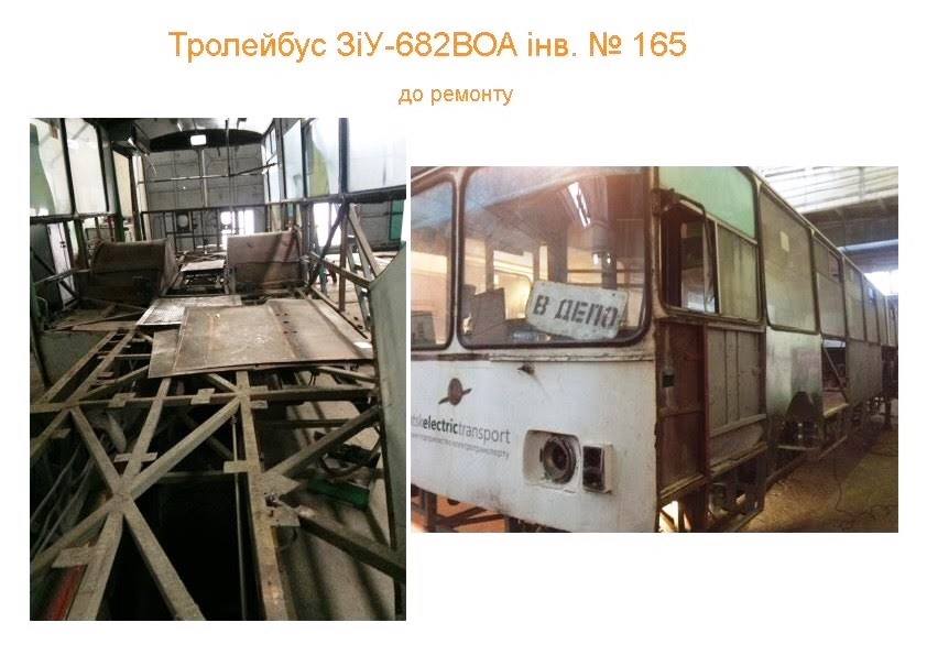 Фото тролейбуса до і після ремонту підтверджують, що від старої машини зберігся лише каркас, який теж повністю відремонтували.