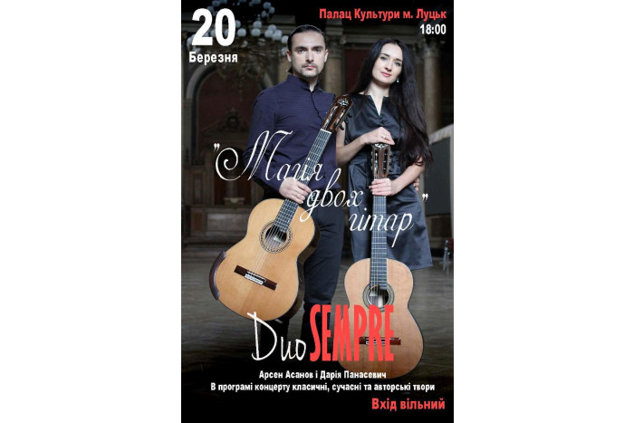 20 березня у Палаці культури міста Луцька відбудеться концерт «Магія двох гітар».