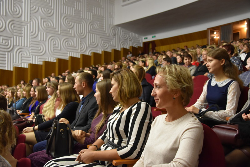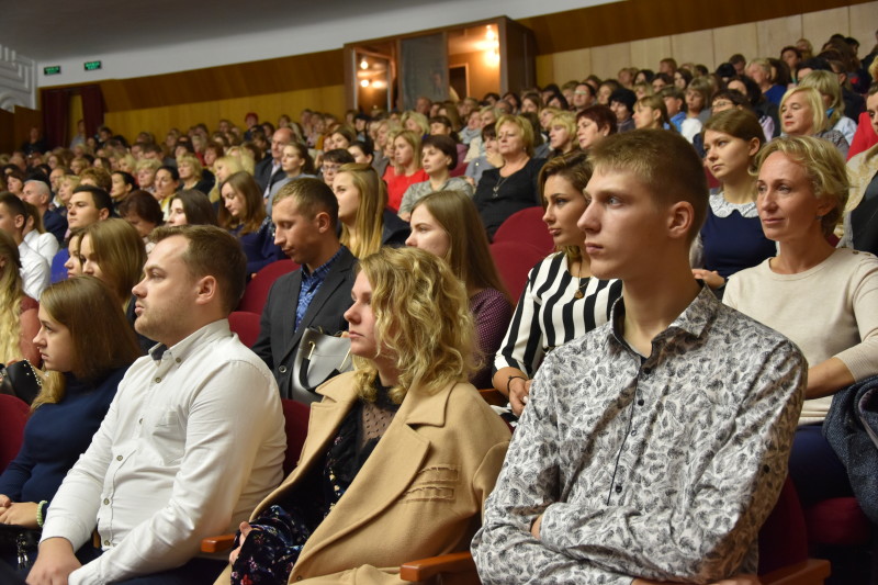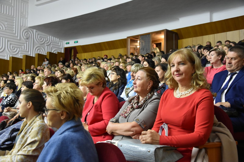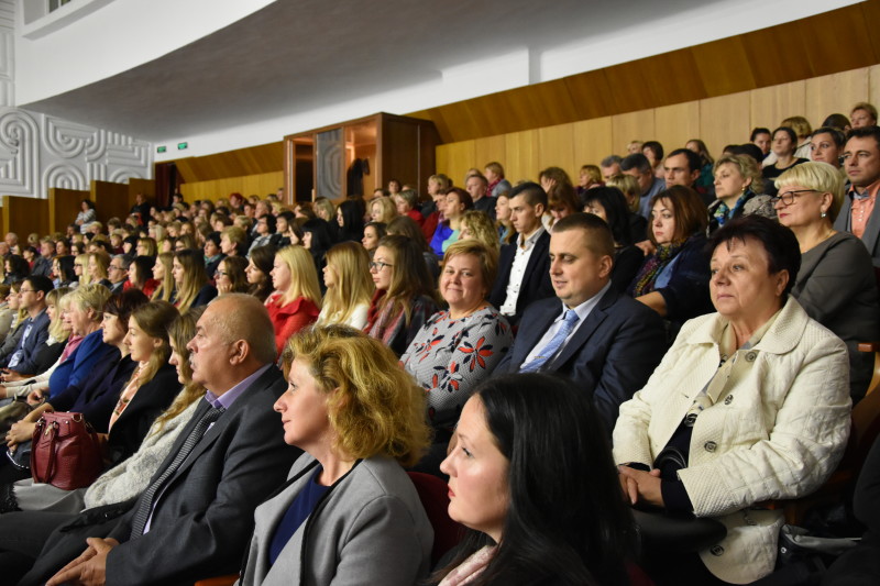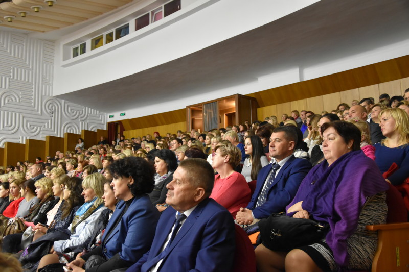 “Дуже символічно, що сьогодні у цьому залі зібралися ті, хто вперше у житті святкує День працівника освіти як професійний освітянин. Ті, хто вибрав для себе неймовірно складну, відповідальну, і, водночас, дуже поважну професію. Кожен із нас пам’ятає свого першого вчителя. І, коли ми говоримо про самореалізацію, в тому, ким ми сьогодні стали – є частина кожного нашого вчителя. Успішною країна може бути лише тоді, коли у неї мудрі, розважливі та далекоглядні вчителі-вихователі, – із вітальним словом звернувся до присутніх Григорій Пустовіт. – Ви вибрали достойний, гідний, прекрасний шлях у своєму житті. Крокуйте впевнено, досягайте тих цілей, яких перед собою ставите. Ви — представники найгуманнішої, найпотрібнішої і найвідповідальнішої професії вчителя”.