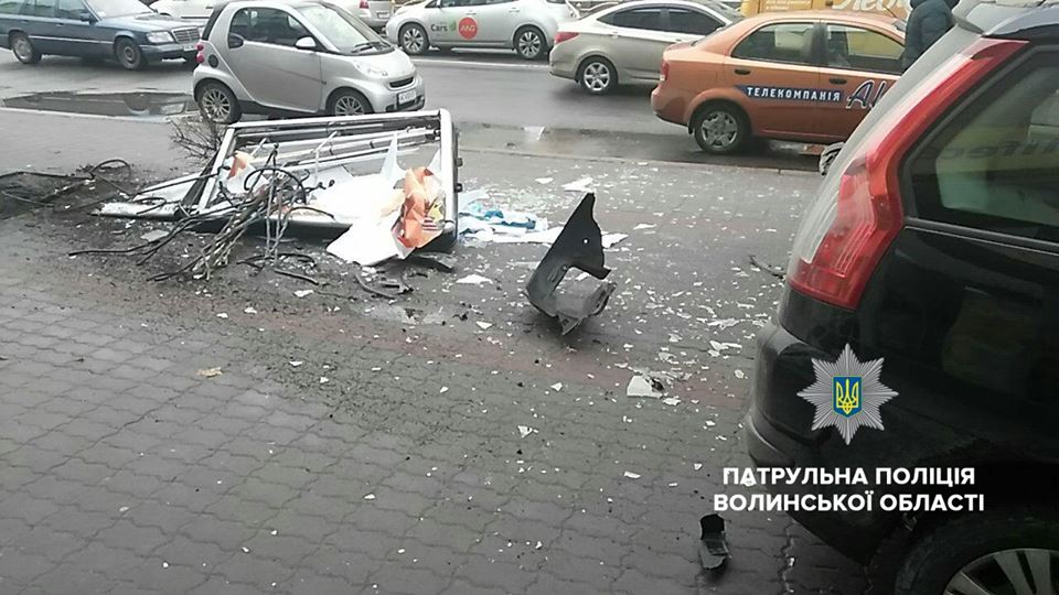 У Луцьку п’яний водій збив рекламний щит і дерево. ФОТО