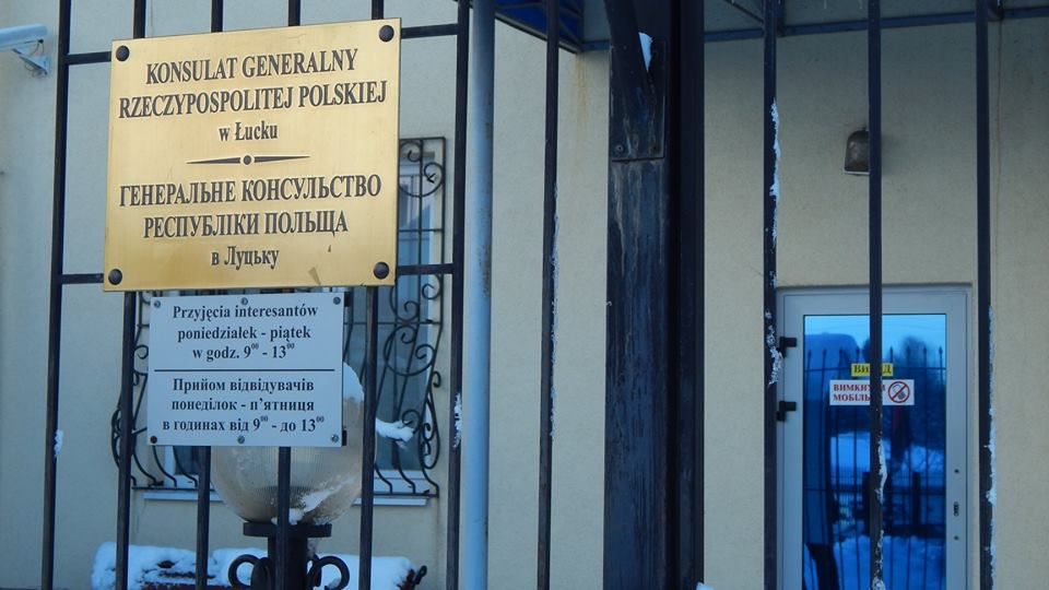 В обласному центрі Волині біля консульської установи зібралося сотні активістів. Учасники акції тримали в руках плакати із написами: «Історію України писати українцям», «Бандера – герой України», «Борці за Україну — воїни УПА» та інші.