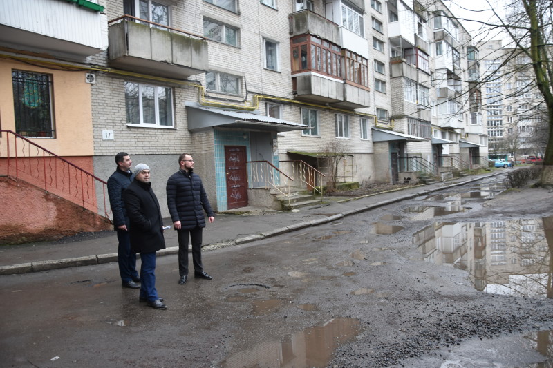 Учора, 3 січня, перший заступник міського голови Григорій Недопад, радник міського голови Ігор Поліщук та директор департаменту житлово-комунального господарства Юрій Крась оглянули стан прибудинкових територій, які внесені в перелік для капітального ремонту цьогоріч.