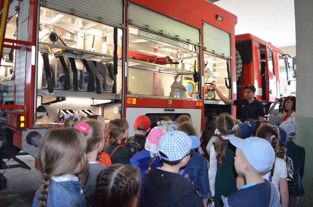 Співробітники підрозділу продемонстрували дітям пожежно-рятувальну техніку, спецобладнання, розповіли його призначення.