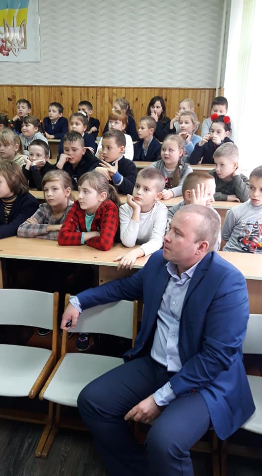 На зустріч з учнями завітав інспектор патрульної поліції Волині Ігор Гапонюк, акція відбулась у рамках співпраці з організацією «Серце до серця», яка й презентувала подарунки школярам.