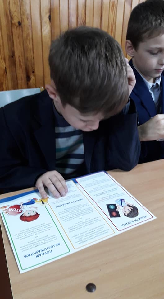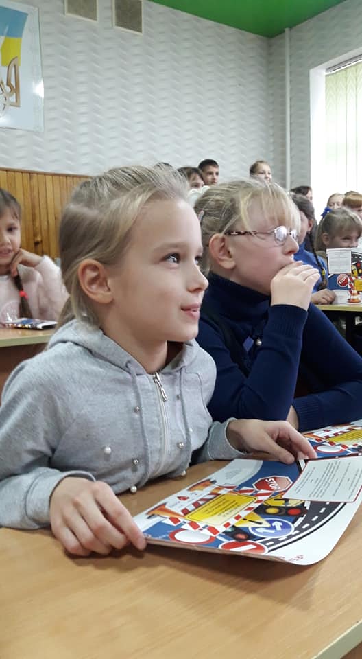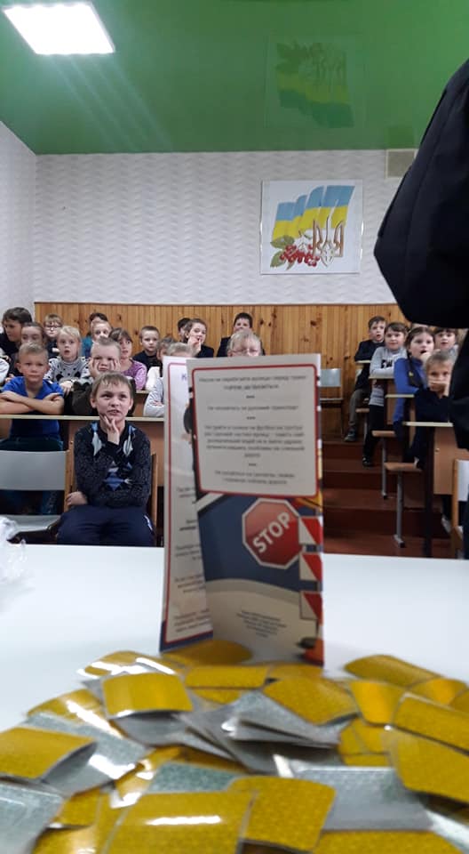 Звісно, в першу чергу говорили про безпеку й дотримання правил поведінки на дорозі. Діти охоче відповідали на запитання, ділились емоціями, ознайомлювались з роботою патрульної поліції. Правоохоронець ставив запитання про безпеку, а учні радо відповідали. І хоч діти чудово знають Правила дорожнього руху, однак більшість світловідбивач побачила вперше.
