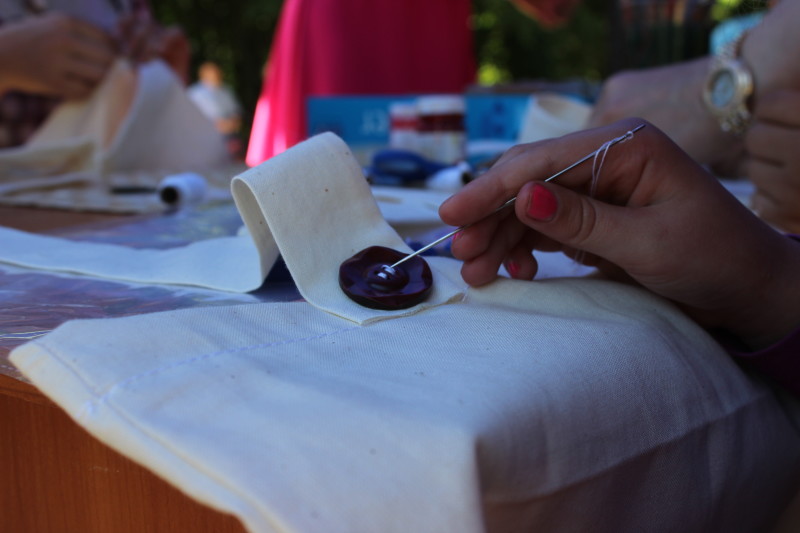 Десять маленьких лучан долучилися до екологічного проекту “ЕкоЛіто”, розмальовуючи еко-торбинки. Хтось з діток вперше навчився тримати у руках голку та пришивати гудзики. Інші — вправно малювали на торбині спеціальними фарбами яскраві квіти.