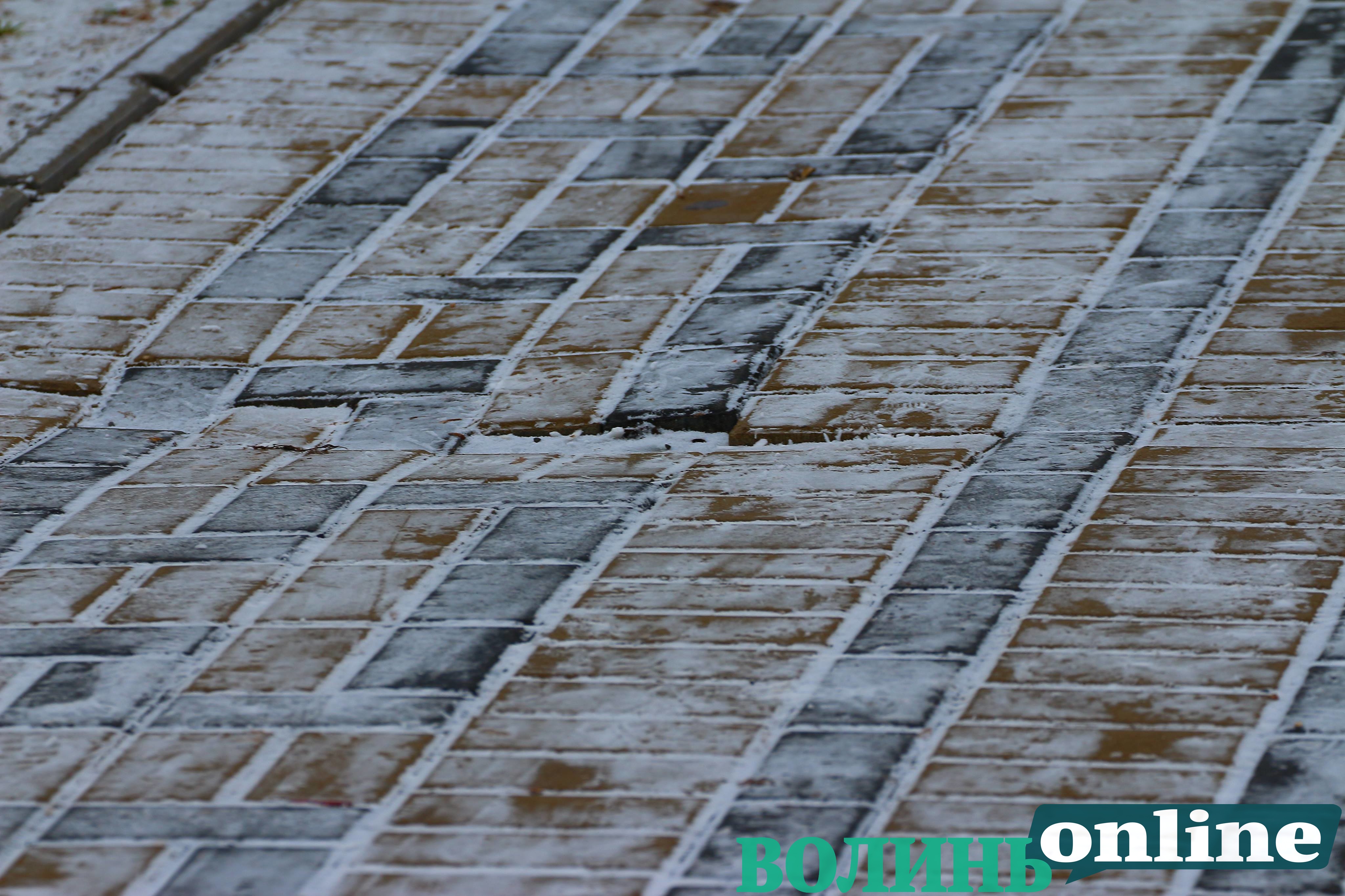 У Луцьку в парку почала руйнуватися нещодавно покладена доріжка. ФОТО