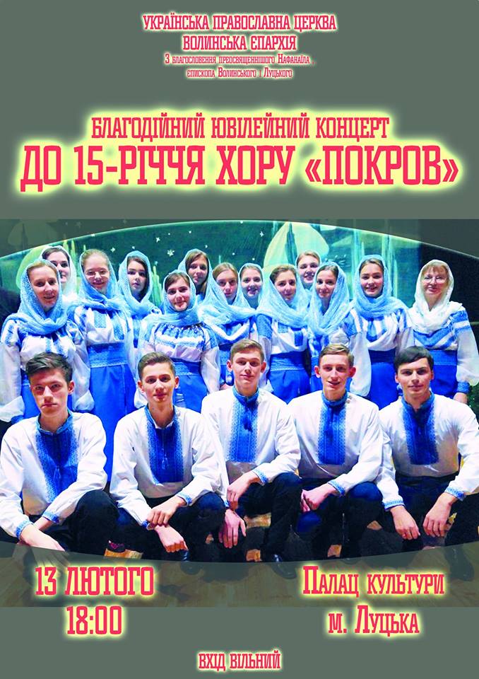 Лучан та гостей міста запрошують на благодійний концерт з нагоди 15-річного ювілею хору «Покров».