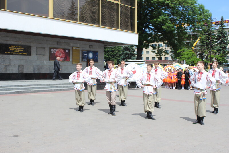 Пізніше на Театральній площі нашого міста відбулося святкове дійство за участю вихованців Палацу учнівської молоді.