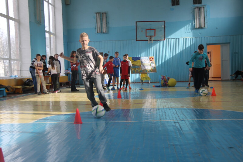 – комбінована естафета (ведення футбольного м’яча, флорбол, фітбол);