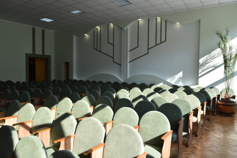Завершили ремонт у актовому залі гімназії № 18. Тут провели поточний ремонт приміщення, замінено глядацькі крісла.