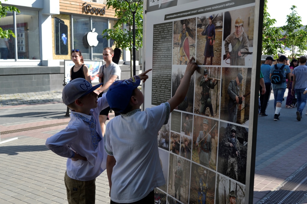 Упродовж дня лучани мали змогу переглянути виставку Українського інституту національної пам’яті «Воїни. Історія українського війська», яка розміщувалась на вулиці Лесі Українки. Окрім того, експозицію супроводжували історичні лекції, які проводив спеціаліст КЗ «Центр національно-патріотичного виховання дітей та молоді у місті Луцьк» Максим Каширець.