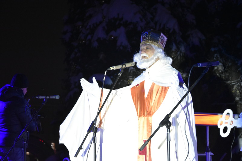 Схоже, що щирі слова та святковий запал, із яким дитячі серця очікували дива, все ж були почуті, тому що згодом до лучан завітав сам Святий Миколай. Як покровитель міста, він привітав усіх із прийдешніми різдвяними та новорічними святами, і попросив своїх янголят-помічників за допомогою Духу Різдва засвітити головну новорічну красуню міста.