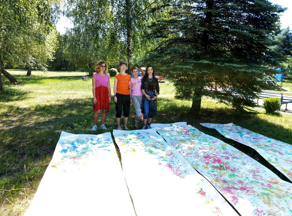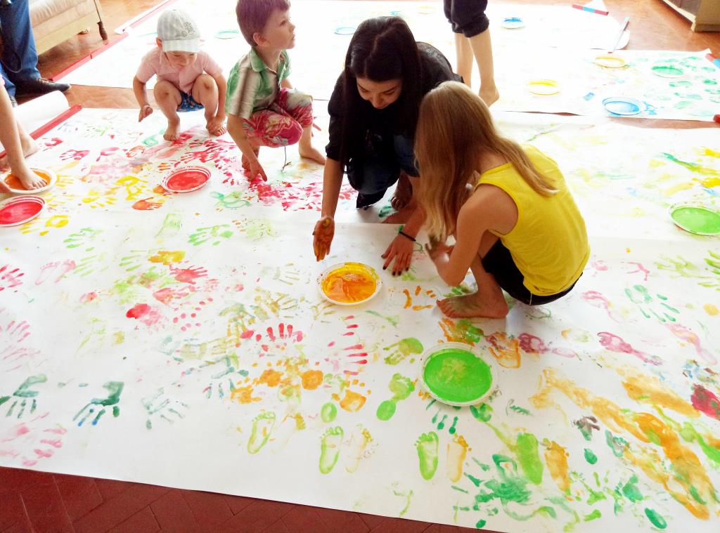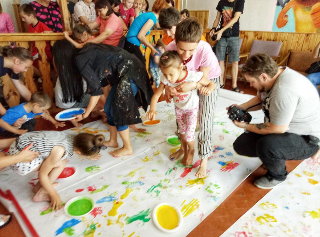 Разом вони створили кілька полотен під назвою «Рух вперед». Дітлахи залишали на папері відбитки своїх ручок та ніжок. До слова, саме у санаторії малюків, які мають проблеми зі здоров’ям ставлять на ноги. Тож картина була доволі символічна, адже деякі діти на полотні робили свої перші кроки.