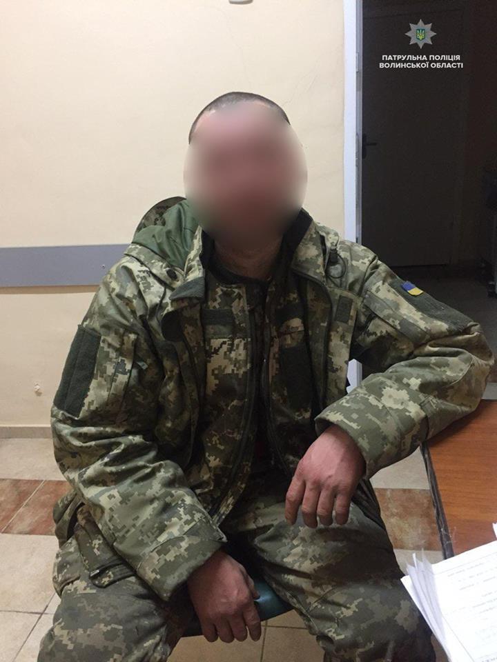 Уже в міськвідділку боєць написав, що він тричі був в зоні ООС, де останній раз отримав контузію. Сам він з Рівненської області.
