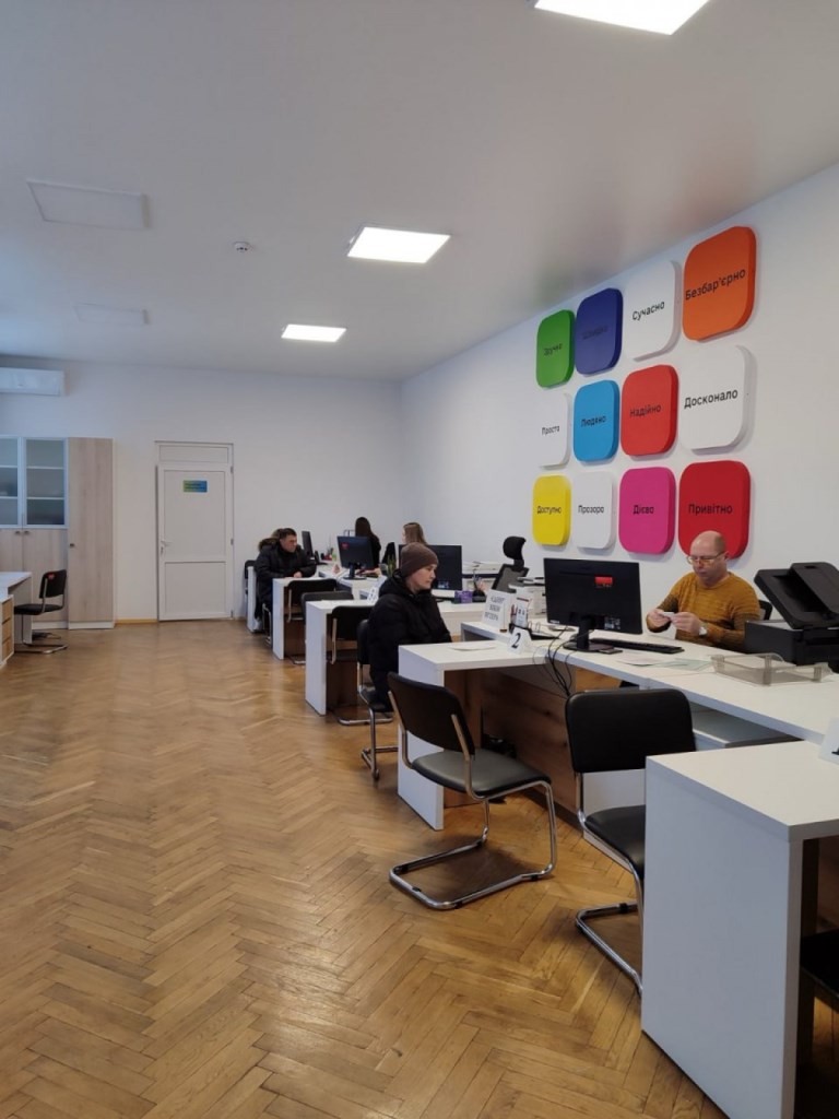 У ЦНАПі обладнане місце для самообслуговування, зона очікування, дитячий куточок, кімната персоналу, робочі місця для персоналу та місце, де можна оцінити якість обслуговування.