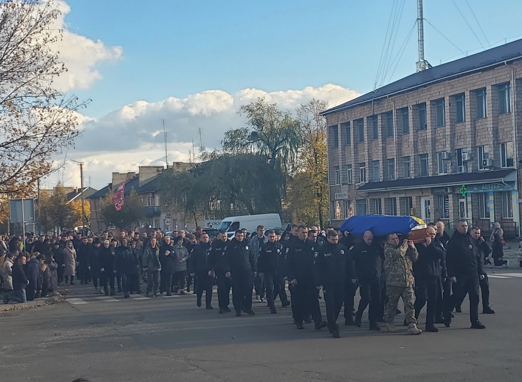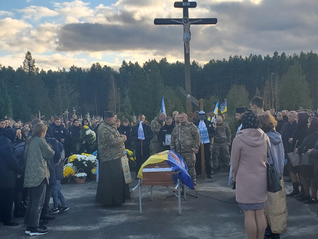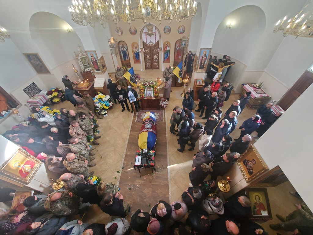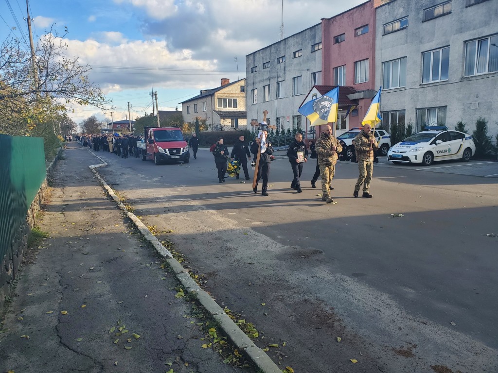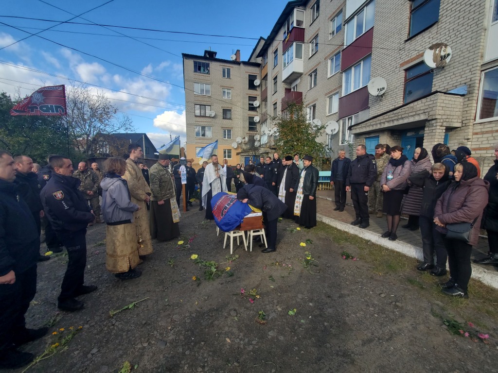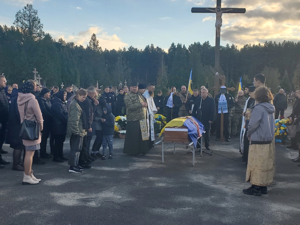 Траурна церемонія прощання та літургія за загиблим відбулася у храмі Святих мучениць Віри Надії Любові та їх матері Софії. На знак поваги та шани домовину з тілом загиблого колеги працівники поліції несли на руках. Поховали Українського Захисника з усіма військовими почестями на місцевому кладовищі.
