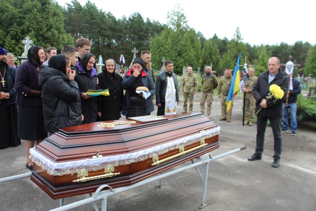 Чин похорону за загиблим звершили священики у Свято-Воскресенському храмі селища. Поховали з почестями на кладовищі у Маневичах. Плакало небо, плакали рідні, друзі, побратими, жителі громади, які прийшли провести відважного захисника до місця вічного спочинку. У воїна залишилися мама, дружина та двоє синів.