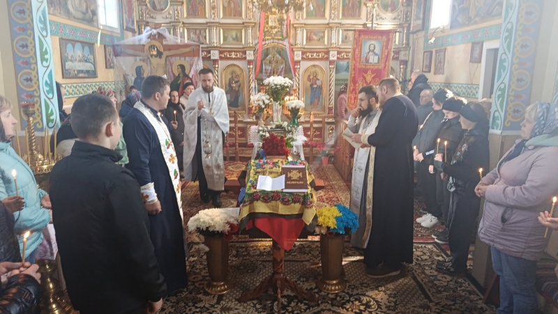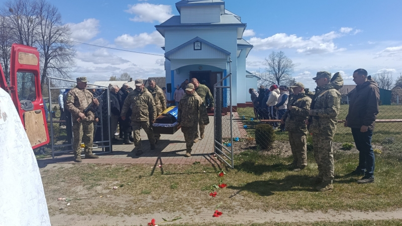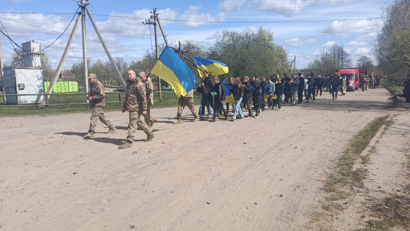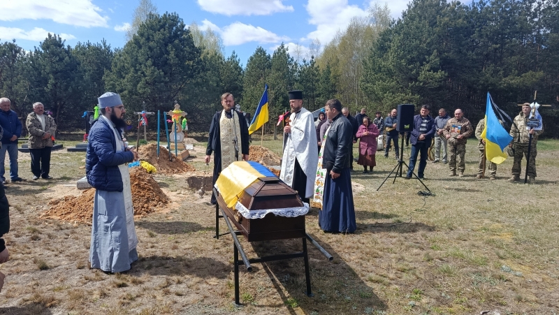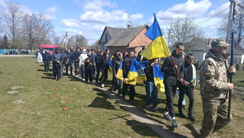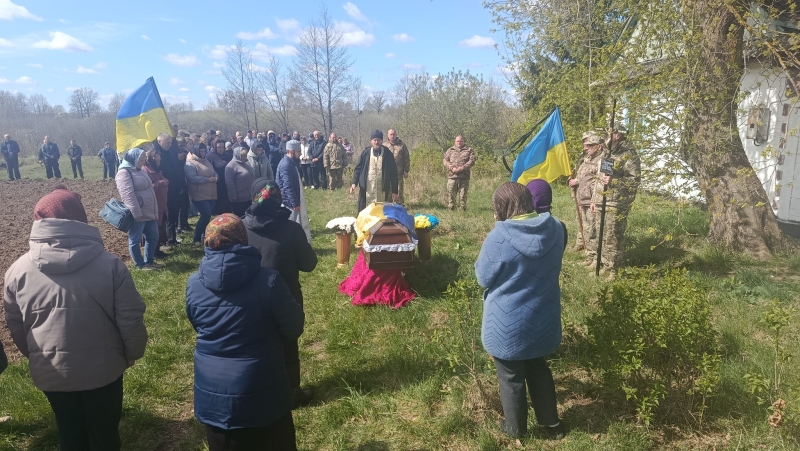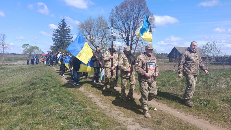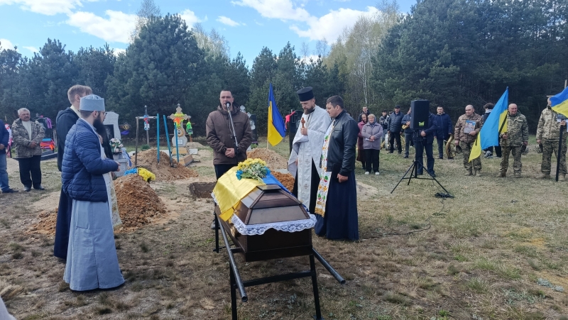 «Під звуки Державного Гімну України та залпи почесної варти тіло воїна віддали рідній землі. Синьо-жовтий стяг, яким була покрита труна, передали родині як символ незламності та вічної вдячності держави за подвиг солдата.