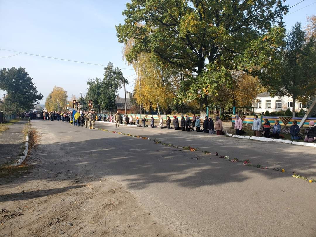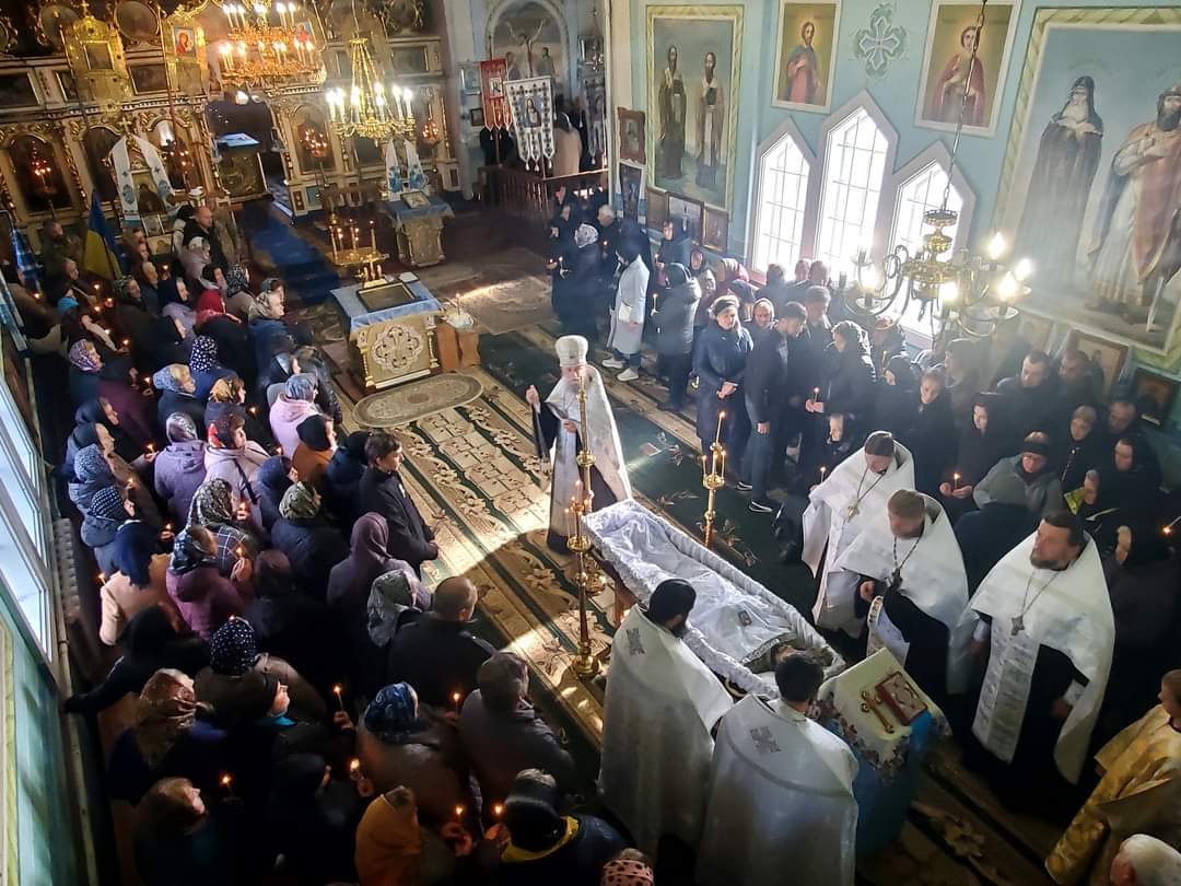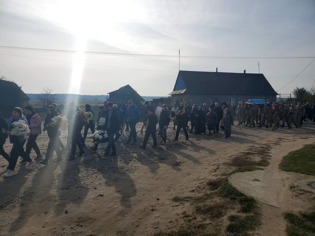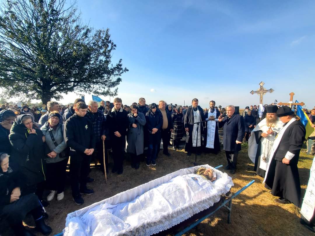 Напередодні домовину з тілом захисника України навколішки, схиливши голови у пошані, зустрічали мешканці громади. Чин похорону за упокій душі українського бійця звершили у Свято-Успенському храмі. Прощалися з загиблим зі сльозами на очах, скорботою та болем від непоправної втрати рідні, односельчани, жителі навколишніх сіл, друзі, представники влади та військові.