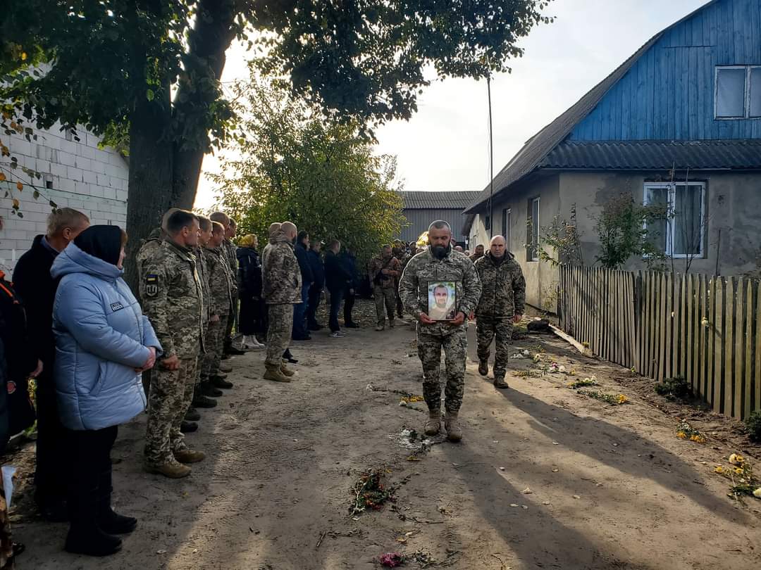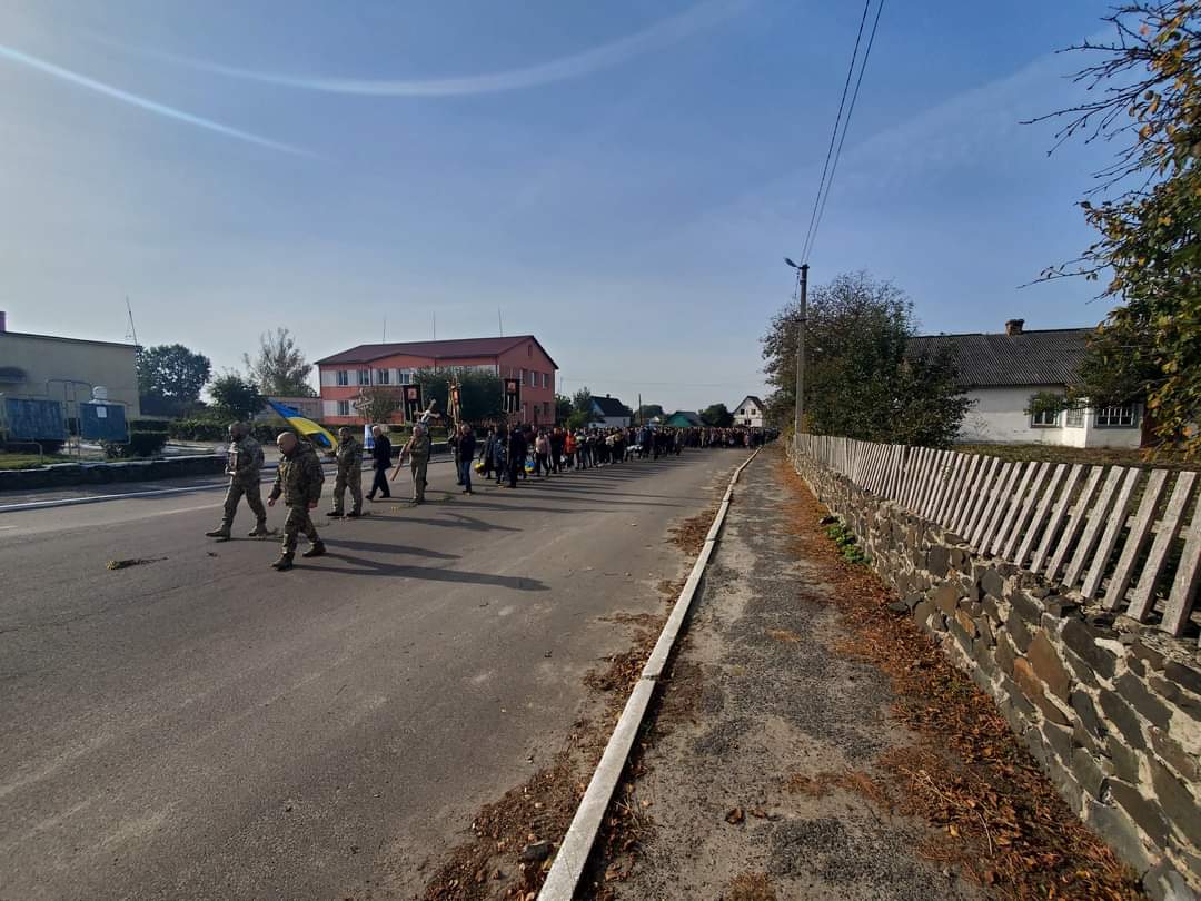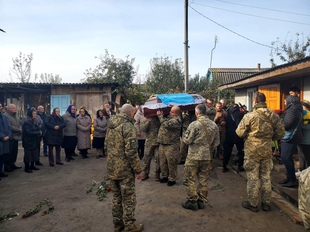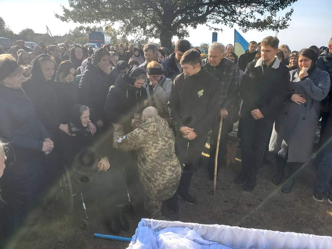 Напередодні домовину з тілом захисника України навколішки, схиливши голови у пошані, зустрічали мешканці громади. Чин похорону за упокій душі українського бійця звершили у Свято-Успенському храмі. Прощалися з загиблим зі сльозами на очах, скорботою та болем від непоправної втрати рідні, односельчани, жителі навколишніх сіл, друзі, представники влади та військові.