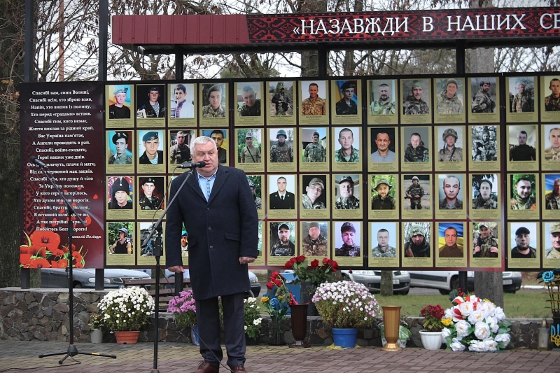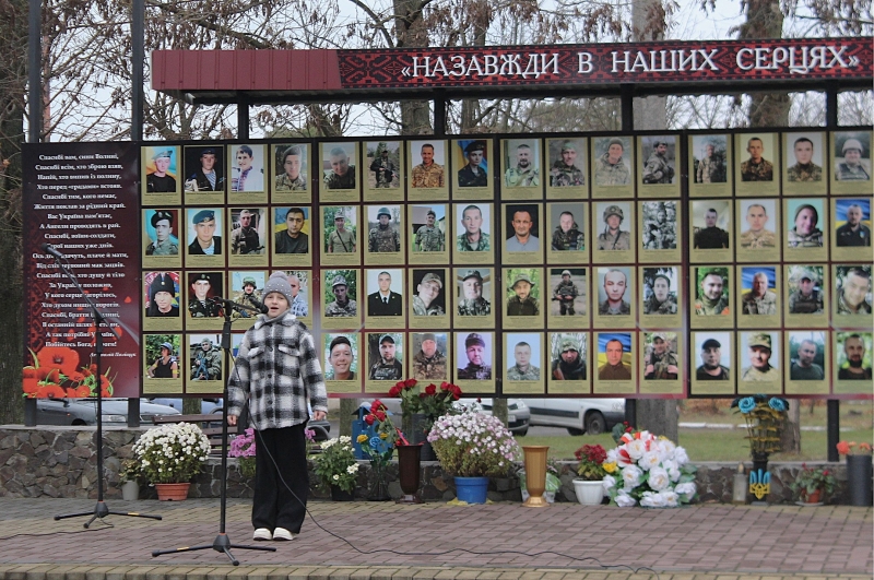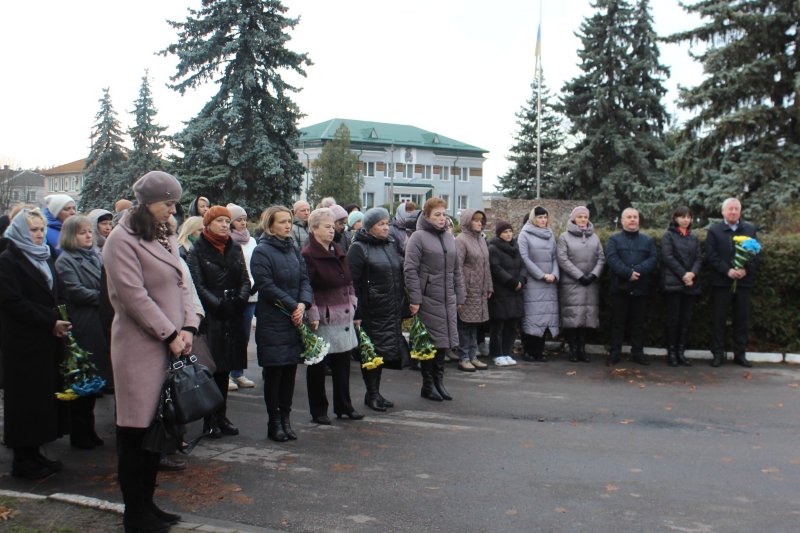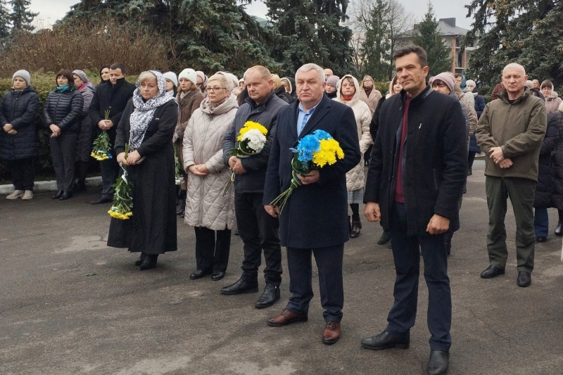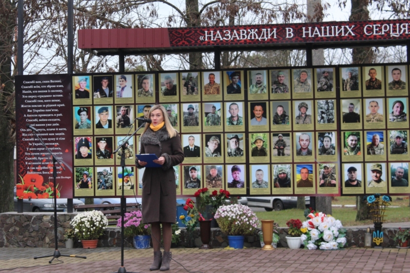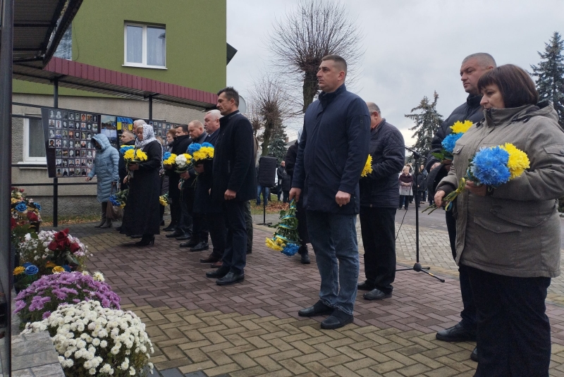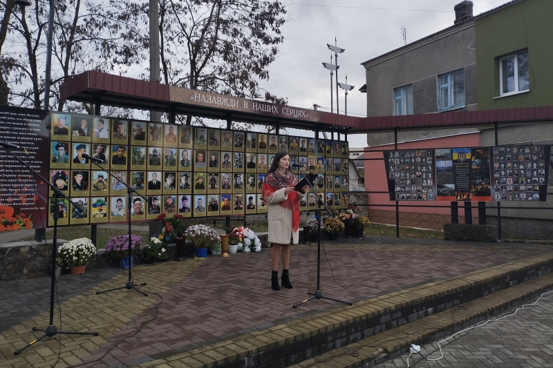 Хвилиною мовчання присутні вшанували пам’ять загиблих захисників України, які полягли за незалежність Вітчизни. На знак пам’яті учасники заходу поклали квіти до пам’ятного стенду.