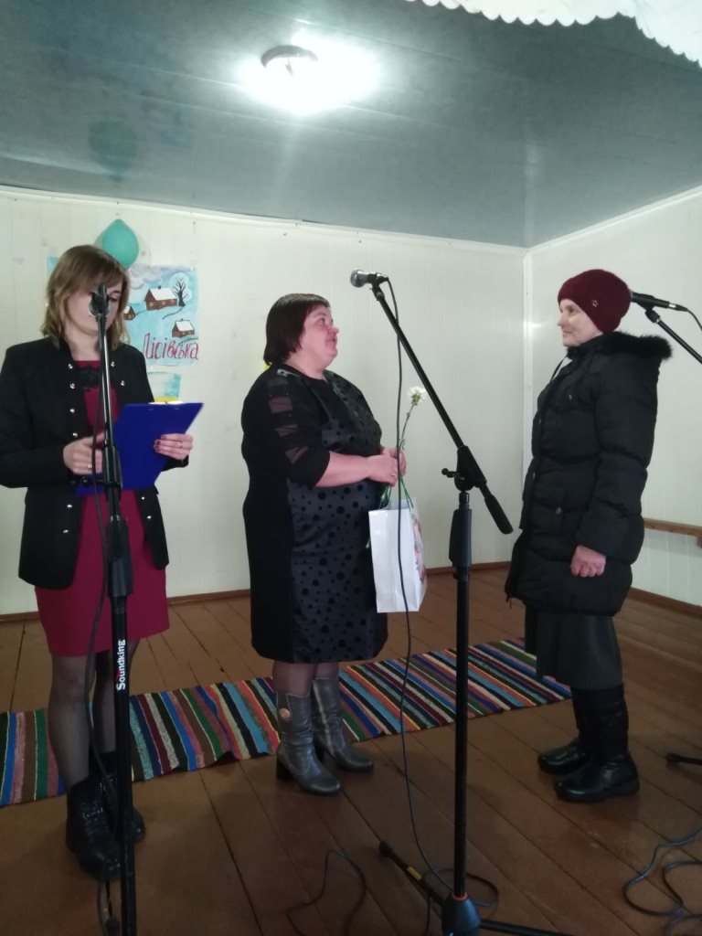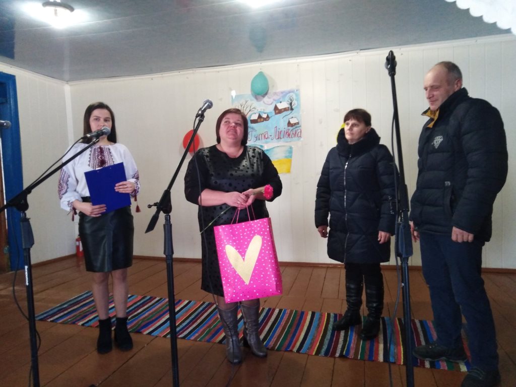 До вітального слова долучилася староста села Надія Нестерук, яка щиро привітала усіх зі святом, подякувала жителям села за активну участь у розвитку населеного пункту його благоустрою та вручила подарунки найстаршому жителю села – Степану Оксенюку, наймолодшій жительці – Варварі Чуйко, сімейним парам  Петра і Людмили Чернюків та Дмитра і Ольги Гарбаруків, які нещодавно відзначили срібне та золоте весілля. Відзначила Надія Францівна молоду сім’ю Олександра та Юлії Стасюків, наймолодшого спортсмена – Іллю Стасюка та  привітала іменинницю, молодшу медичну сестру місцевого ФАПу Софію Кушнір, яка відзначає свій день народження у день храмового свята. Окрему подяку староста висловила небайдужим підприємцям, які долучаються до  проведення різних заходів.