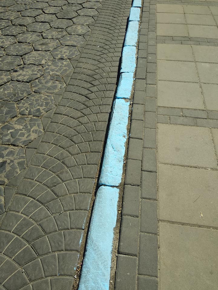 Лучанин обурився, що на вулиці Кривий Вал пофарбували бордюк синім кольором.