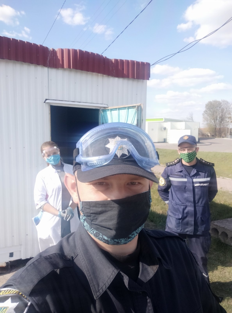Працівники служб, які чергують на КПП, забезпечені засобами індивідуального захисту, дезінфікуючими та харчуванням. Поблизу КПП облаштували біотуалети.