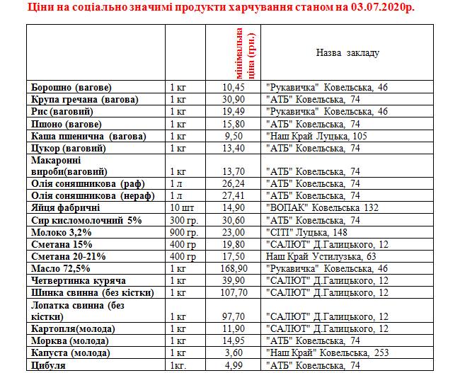 Управління економічного розвитку та інвестицій виконкому Володимир-Волинської міської ради 3 липня здійснювало черговий моніторинг цін на соціально значимі продукти харчування, які реалізовуються у вісьмох супермаркетах міста.