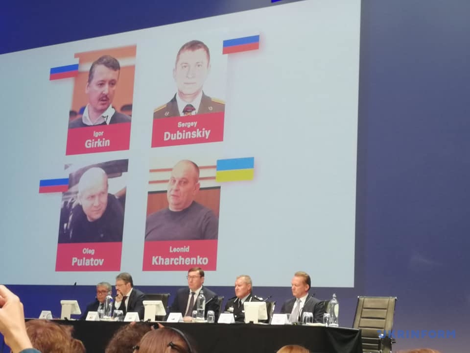 Міжнародна Спільна слідча група з розслідування катастрофи МН17 (JIT) офіційно назвала причетних до збиття «Боїнга». У залі також показали відео, у якому розповіли про кожного з чотирьох і в чому їх звинувачують.