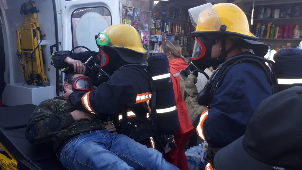 Вогнеборці провели розстановку сил та засобів, передбачених для ліквідації такого роду пожеж, здійснили оперативне розгортання із прокладенням магістральних ліній, в складі ланки газодимозахисної служби провели розвідку та евакуацію потерпілого для локалізації та подальшої ліквідації умовної пожежі.