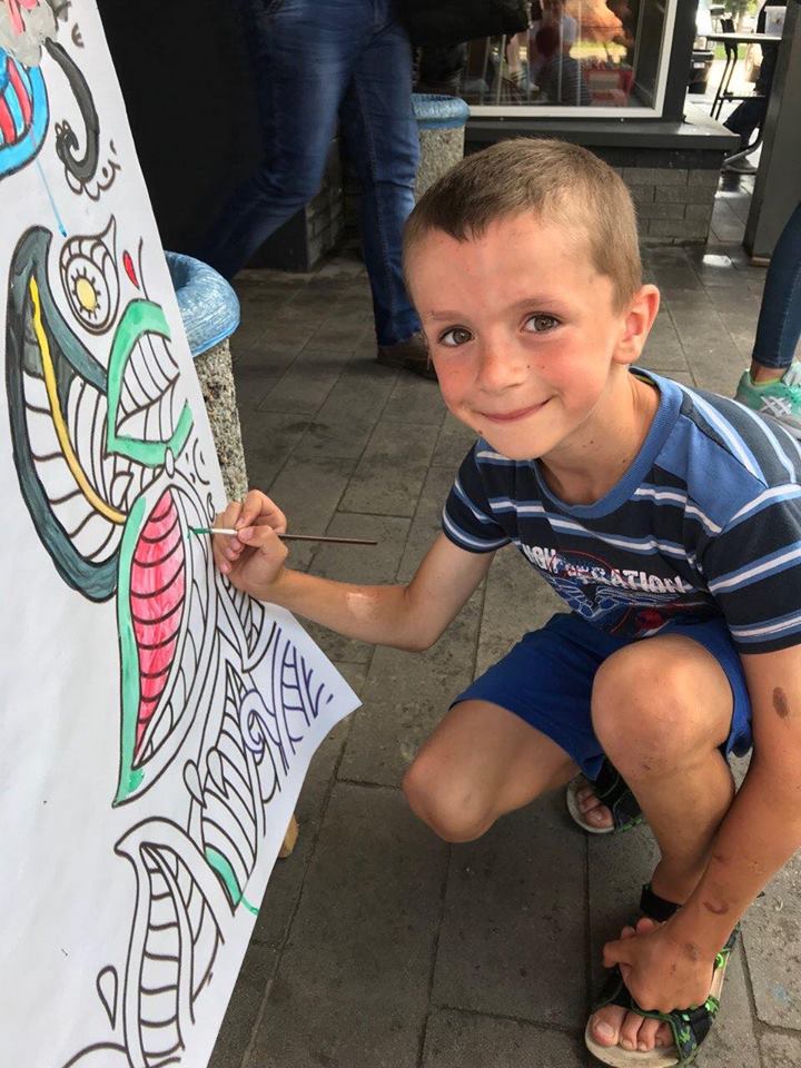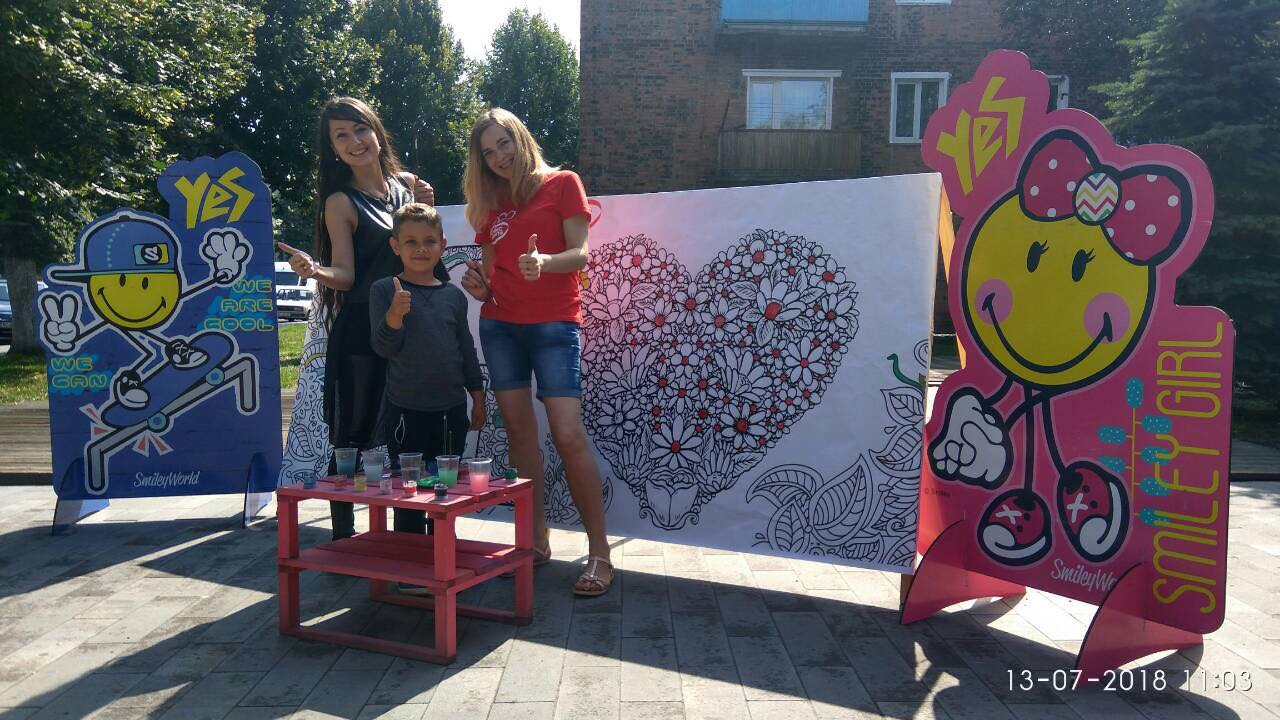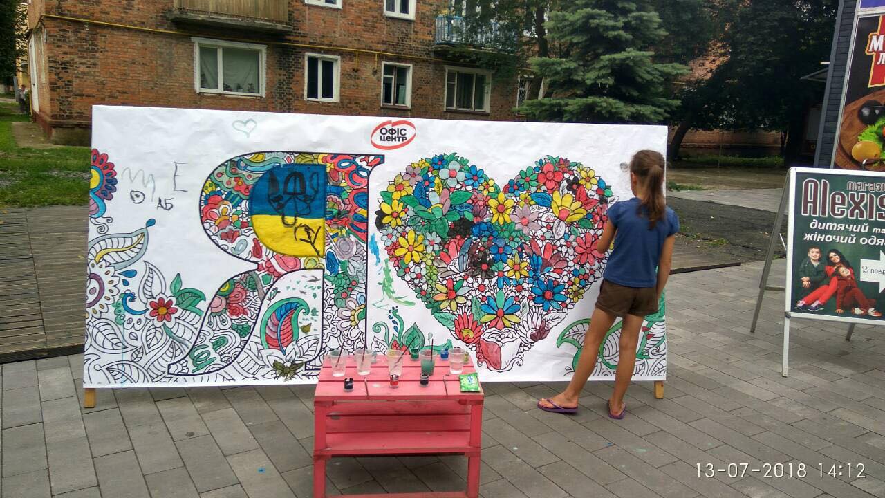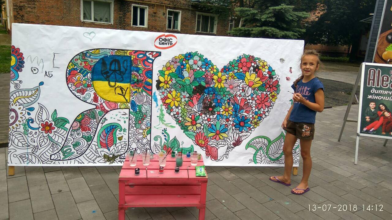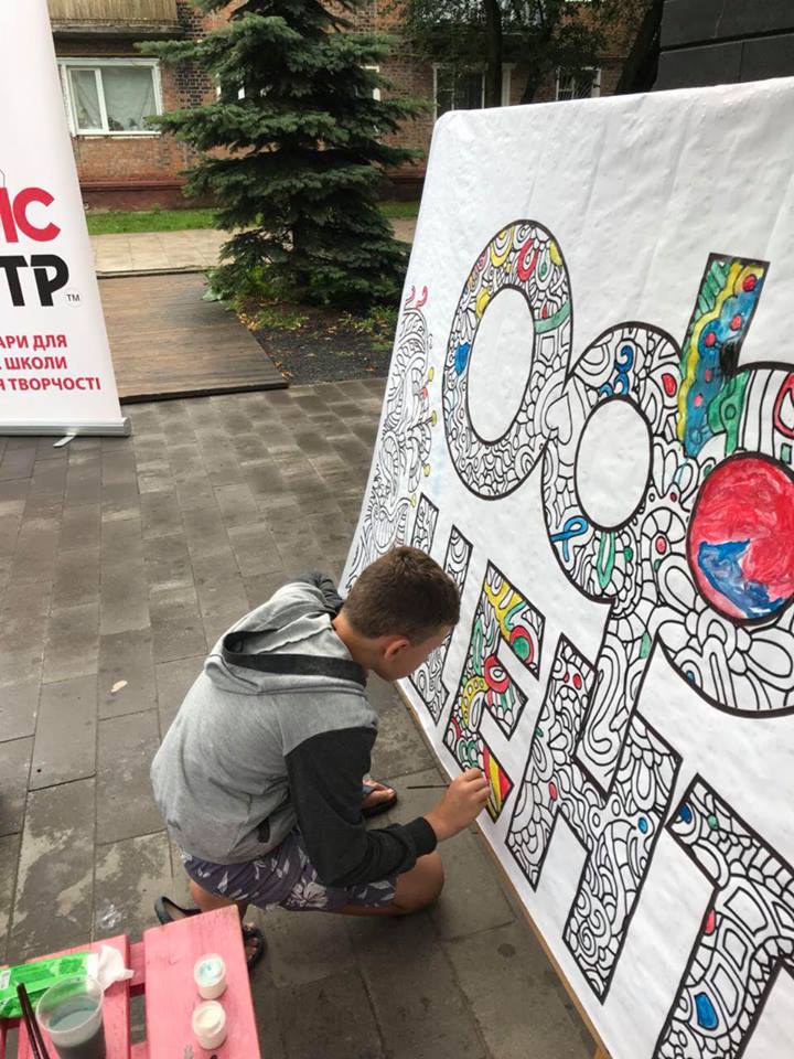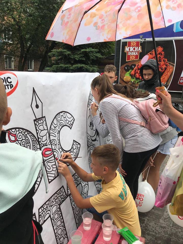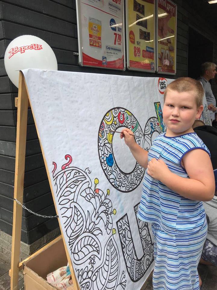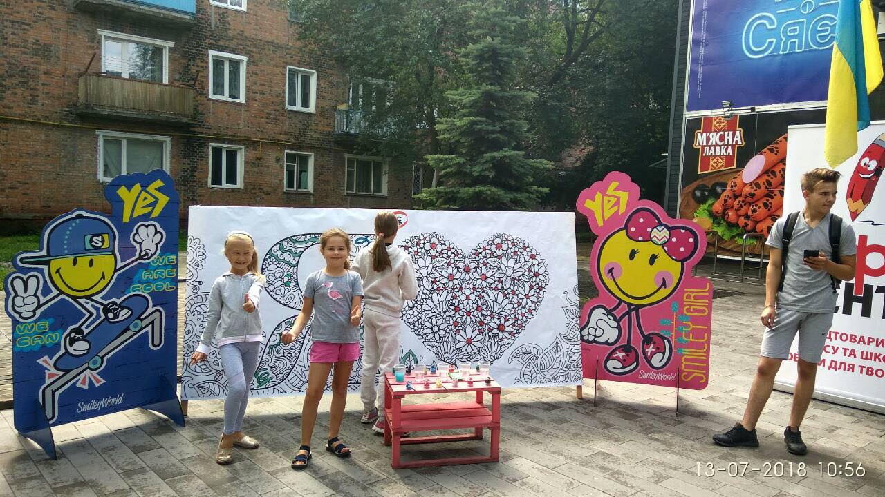 На вулиці нікого байдужим не залишила двометрова розмальовка-антистрес, повз яку навіть дорослі не могли пройти. На шопінг запрошував веселун Олівець, символ мережі «Офіс-центр».
