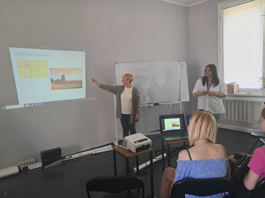 У перший день висвітлили основи візуального мистецтва: кольорознавство, композиція та особливості поліграфії. Із тематичними повідомленнями виступили бібліотекарки Віта Залужна, Людмила Турик та Оксана Калістратова. Учасники зацікавлено слухали й активно ставили питання доповідачам.