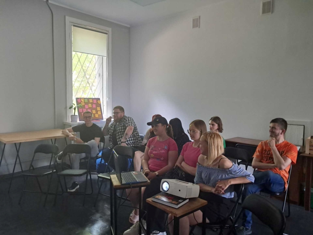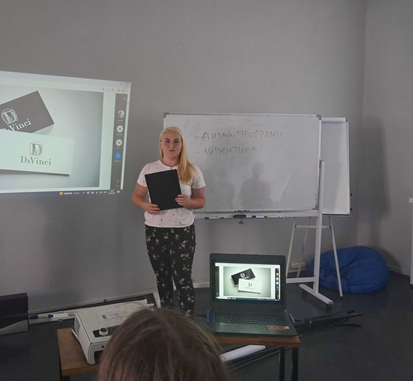 Другий день навчання містив складнішу інформацію: комп’ютерні програми для графічного дизайну й поняття айдентики. Вчилися аналізувати логотипи і фірмові стилі на прикладах спікерки. Такий активний диспут проводили бібліотекарки Інна Кронберг та Марта Ляшук.