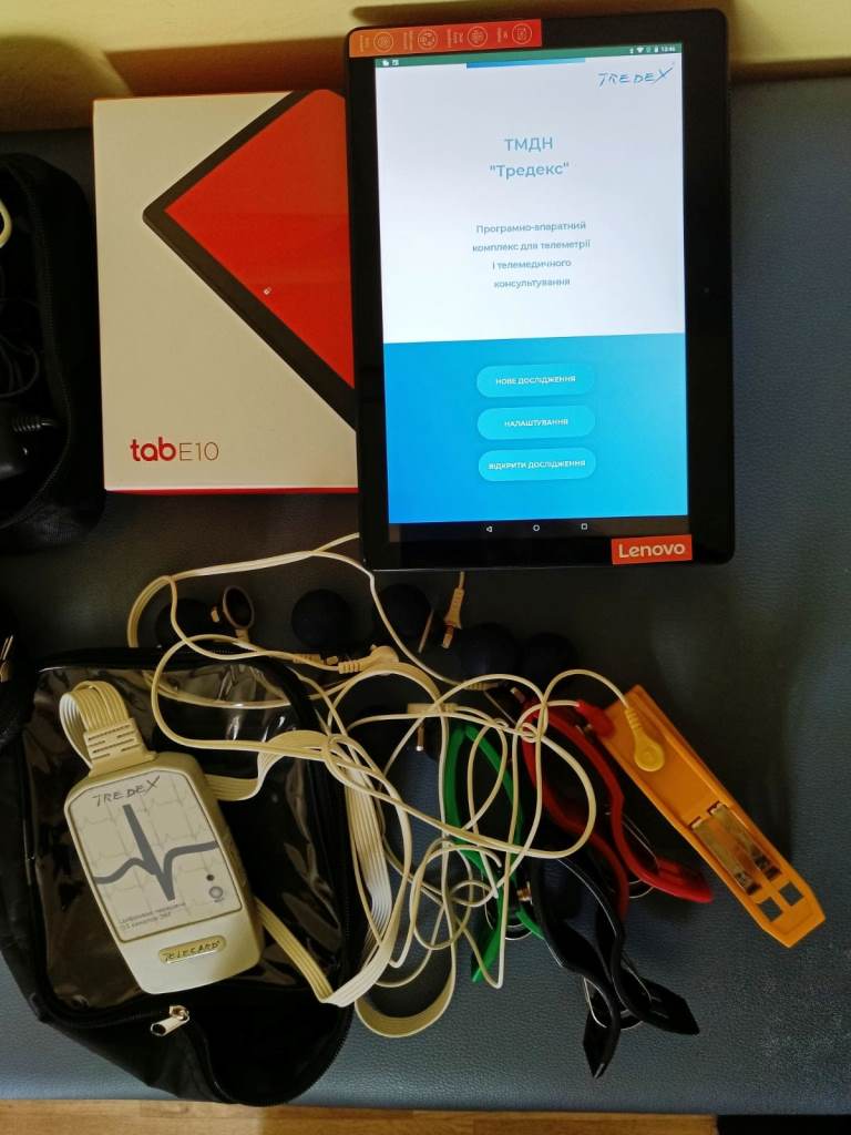 Медична сестра пункту тимчасового базування за допомогою спеціального обладнання збирає дані про стан пацієнта (тиск, пульс, сатурація, ЕКГ) та передає їх лікарю кабінету телемедичного консультування у Нововолинській амбулаторії № 2.