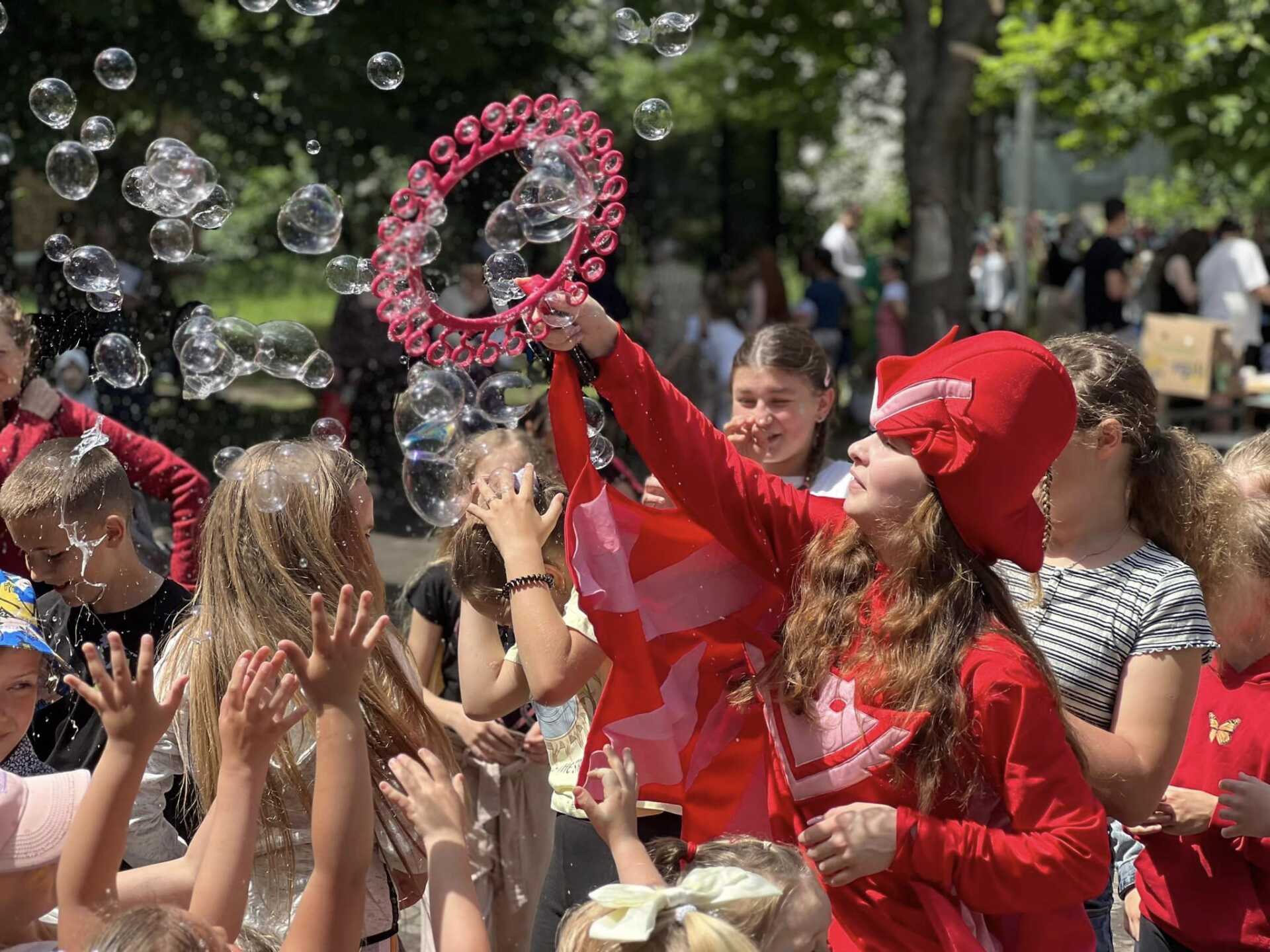 На майдані Незалежності діти малювали на асфальті, дивилися бульбашкове шоу, брали участь у майстеркласах, працювали локації, де малечі малювали аквагрим та плели афрокоси, а також була представлена виставка спецтехніки.