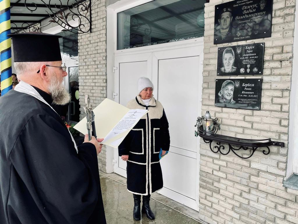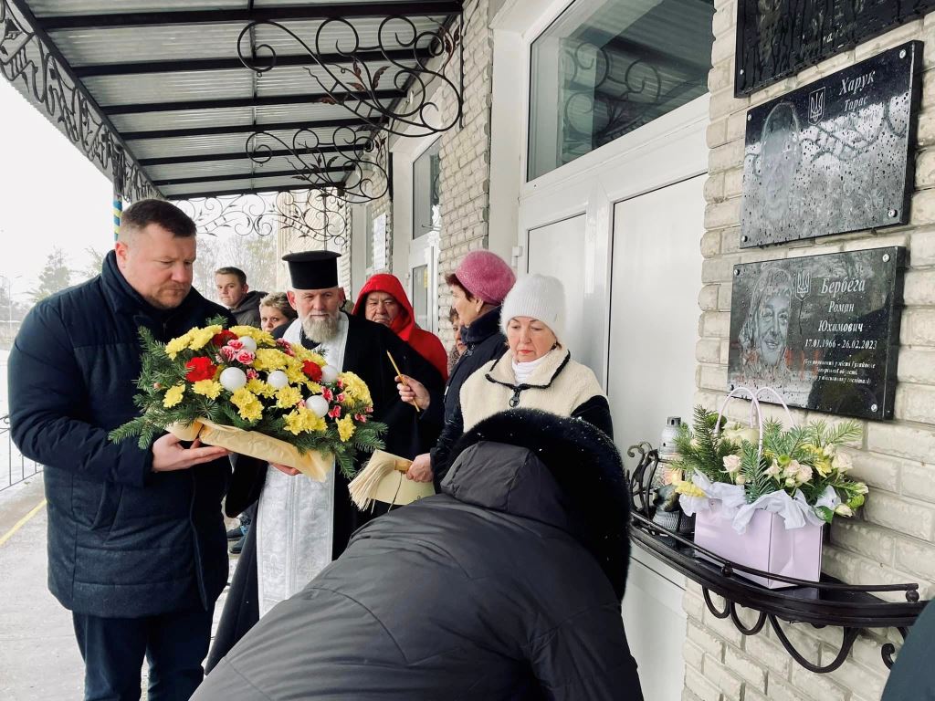 На знак пошани до полеглих Захисників України, випускників Нововолинського ліцею № 8 Романа Бербеги та Тараса Харука на фасаді закладу встановили пам’ятні дошки. 15 грудня на відкриття прийшли рідні й знайомі Захисників, учні та вчителі ліцею, Нововолинський міський голова Борис Карпус та представники управління освіти.