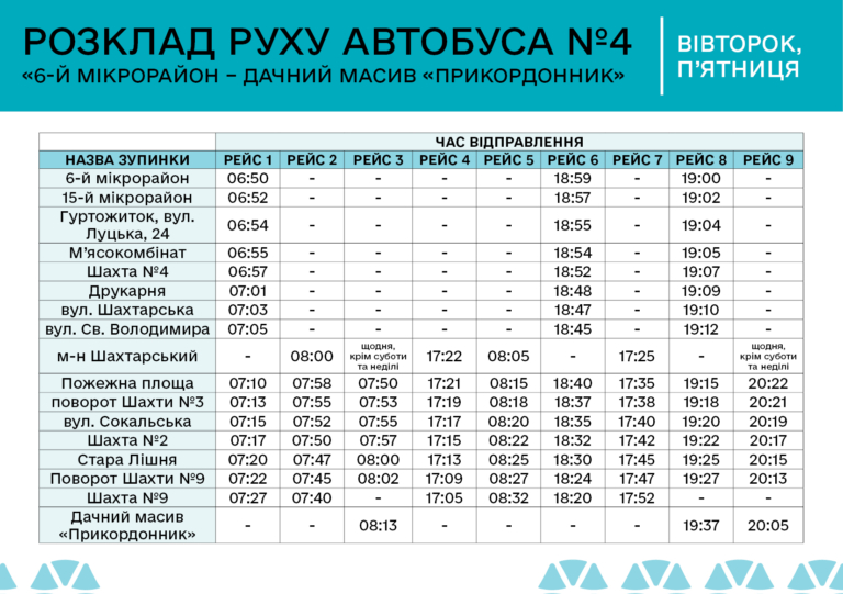 «З 17 квітня (понеділок) починає курсувати пільговий автобус № 4 за маршрутом «6-й мікрорайон – дачний масив «Прикордонник».