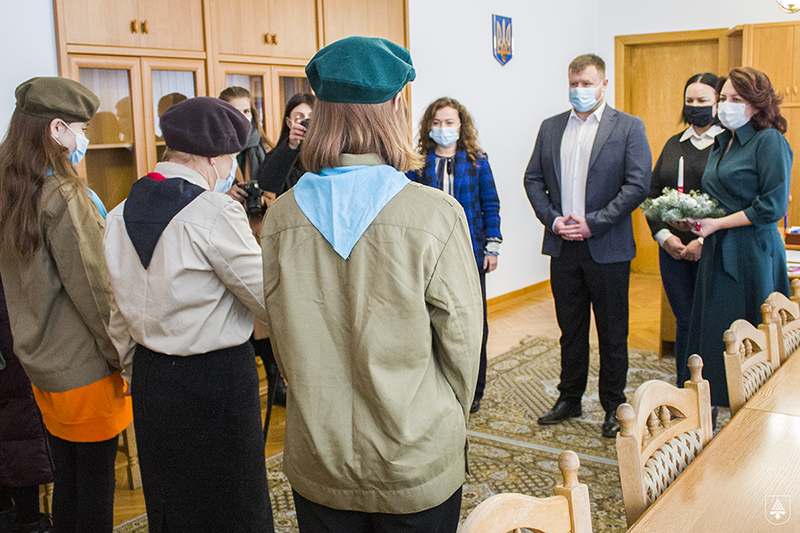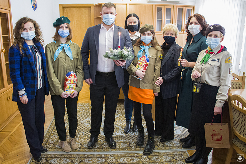 Сьогодні, 21 грудня, нововолинські пластуни на чолі з станичною Вітою Сергеєвою завітали з Вифлеємським вогнем Миру в міську раду і передали його міському голові Борису Карпусу та працівникам виконкому.