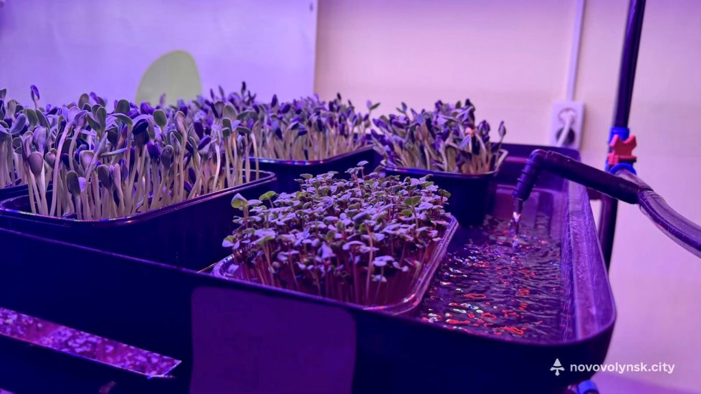В укритті ліцею облаштували спеціальний простір, де учні вирощують мікрогрін за гідропонною технологією – без використання ґрунту, під ультрафіолетовим світлом і з системою поливу. Учні разом зі своїми педагогами-наставниками Ніною Лях і Тетяною Приймак постійно стежать за процесом росту мікрозелені.