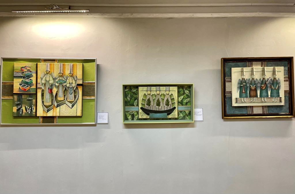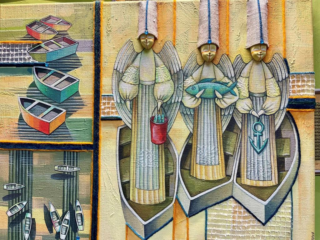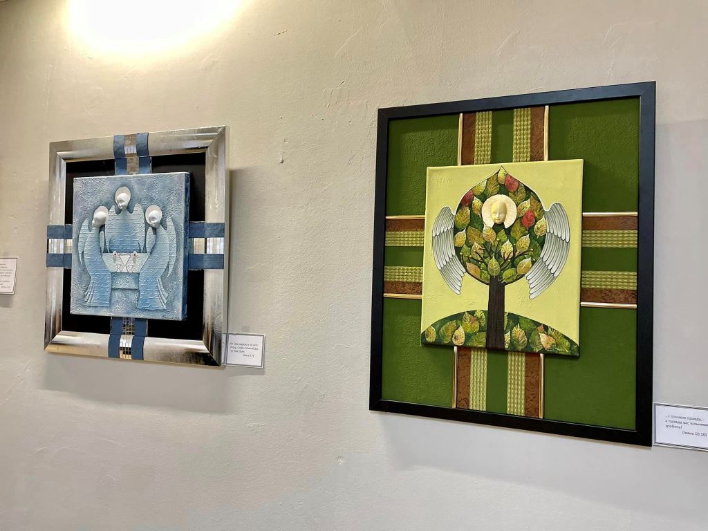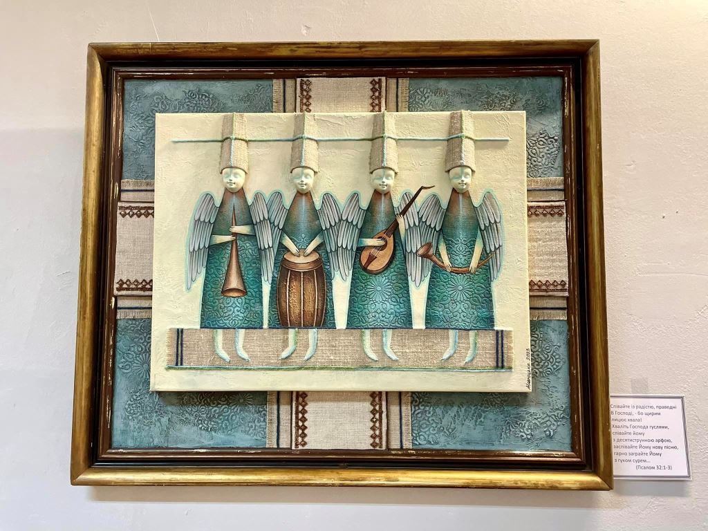 23 картини на яких зображені янголи виконані у різних стилях та техніках.