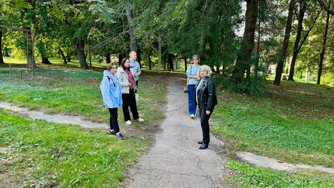 Перша група під керівництвом заступниці начальника управління освіти Вікторії Римарчук оглянула міський парк культури та відпочинку, територію центральної лікарні, частину мікрорайону Шахтарського та подвір’я ліцею № 8.