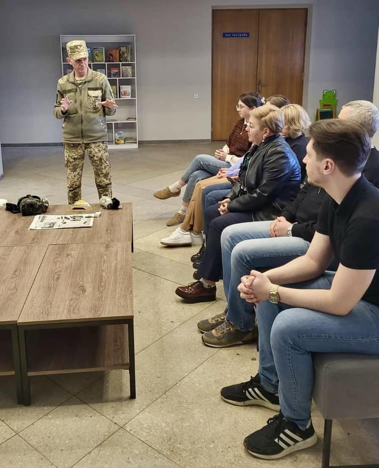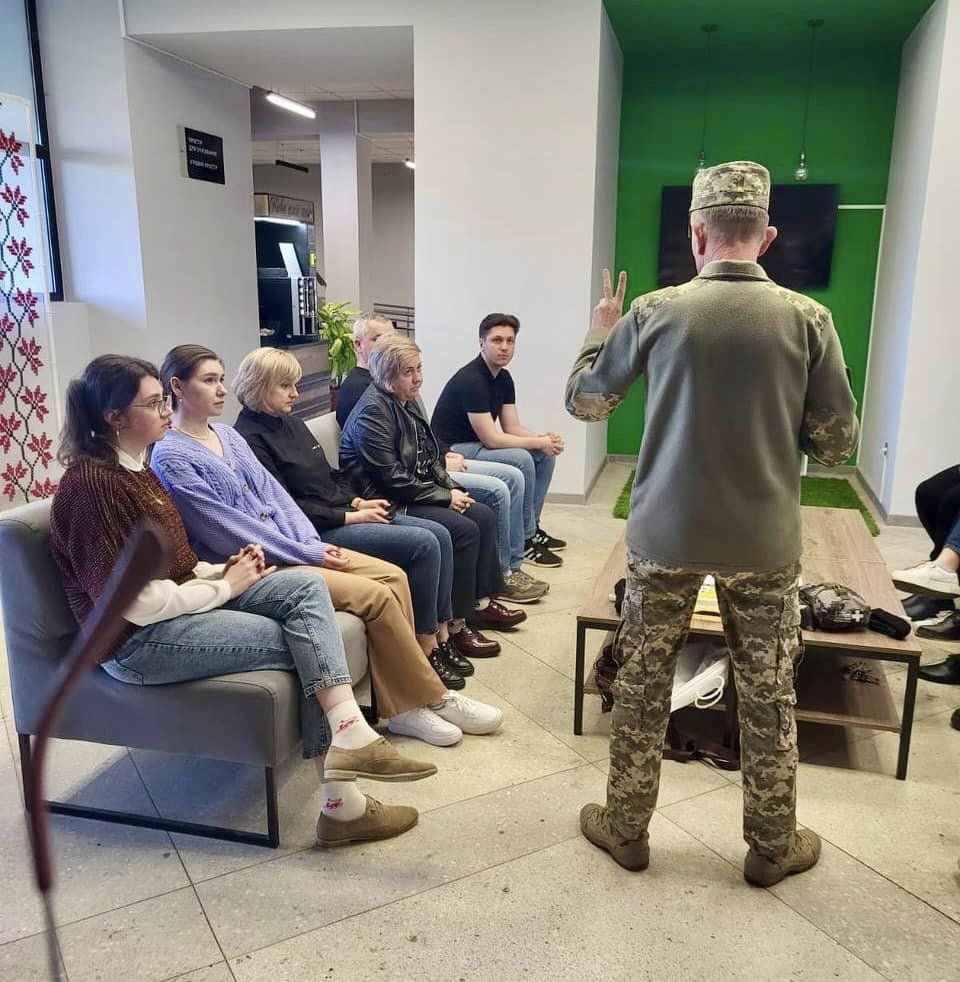Під час заняття інструктор розповів про тактичну підготовку, основи домедичної допомоги та алгоритм евакуації пораненого.
