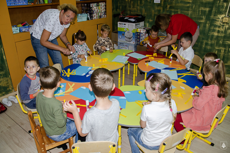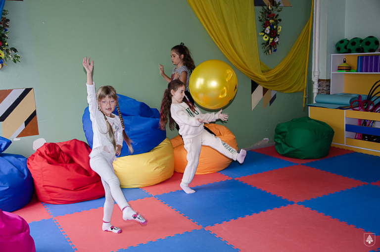 Команда фасилітаторів та психологів, які пройшли спеціальне навчання, від травня почали проводити творчі майстеркласи, психологічні ігри, мінітренінги й лекції, фізичні заняття, бейбі-йога, танці, спортивне ушу. Усі заняття направлені на те, щоб, попри війну, діти відчували себе спокійно та у безпеці, щоб вчилися долати стресові ситуації, розвивати емоційний інтелект.