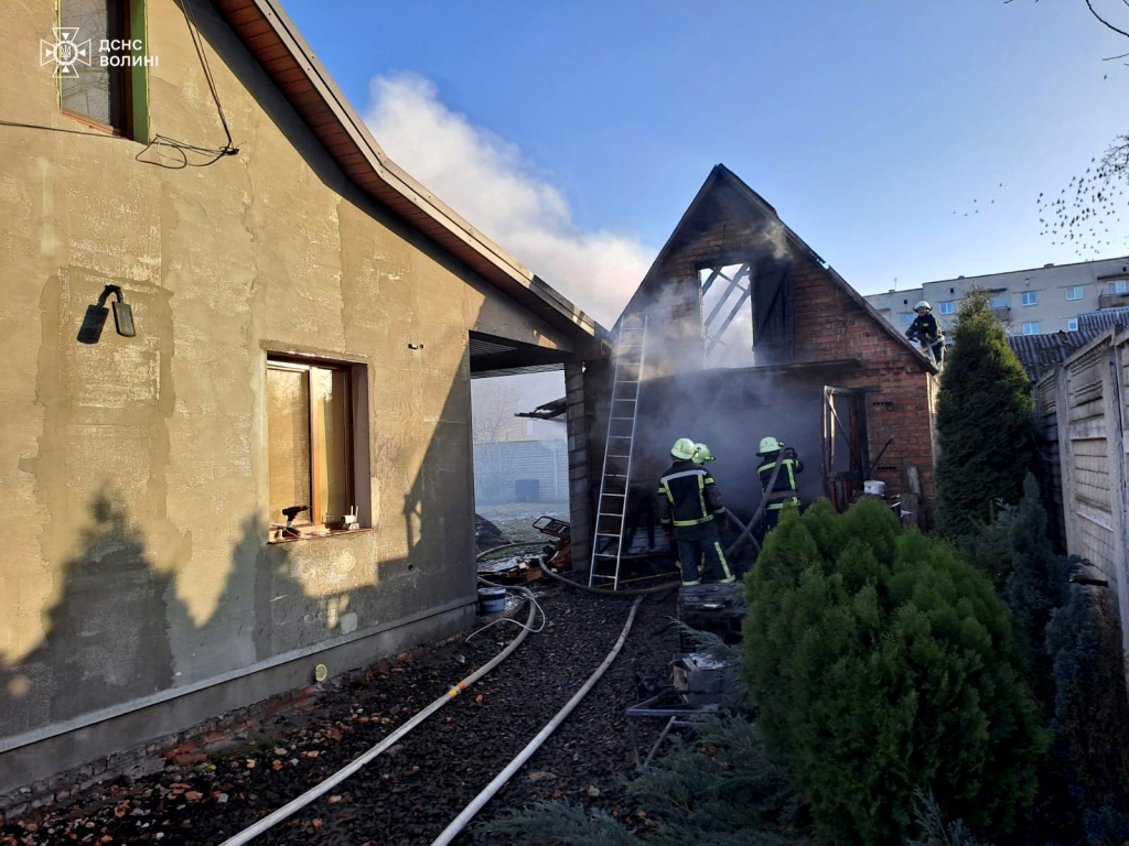 У Нововолинську рятувальники оперативно ліквідували пожежу гаража та запобігли перекиданню полум’я на суміжні будівлі
