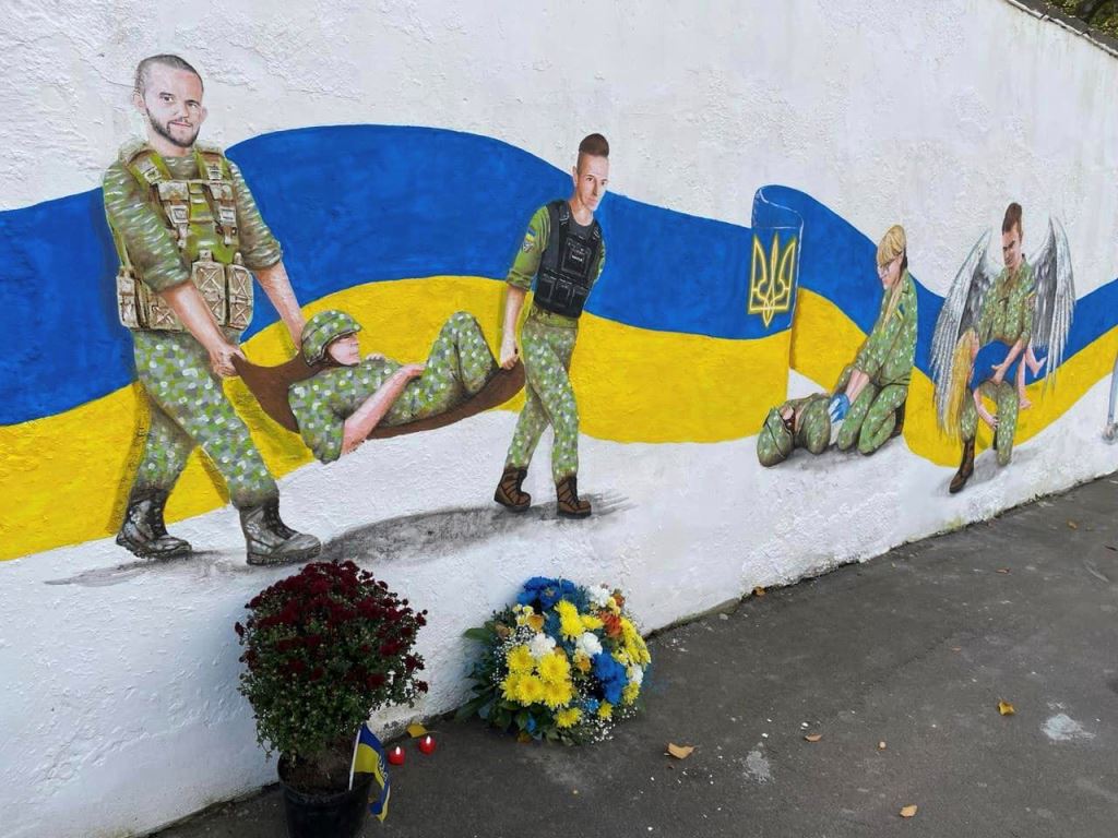 «Сьогодні біля відділення швидкої допомоги презентували стінопис, де юні нововолинські художники Максим Плотніков та Павло Москаль зобразили силуети шахтарів, хліборобів та військових. У центрі композиції – кольорові портрети медиків, які віддали життя, рятуючи інших на передовій.