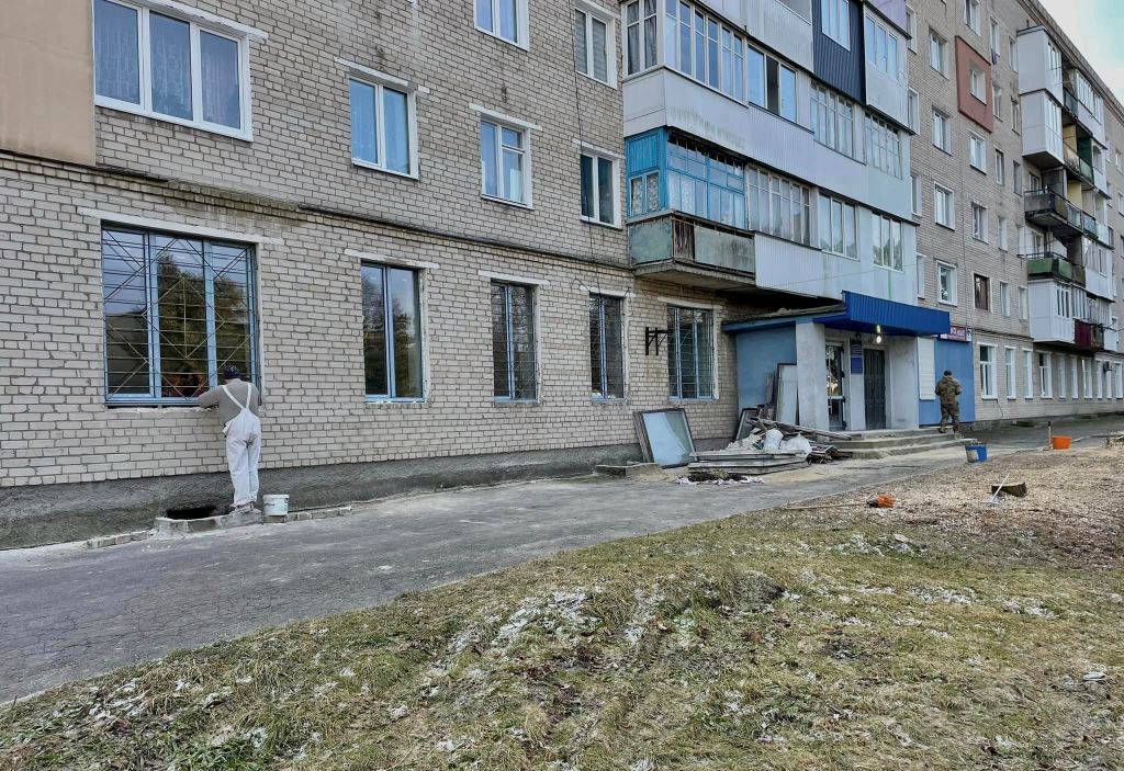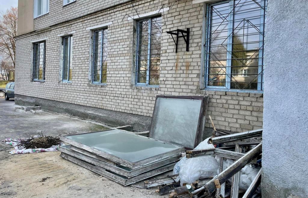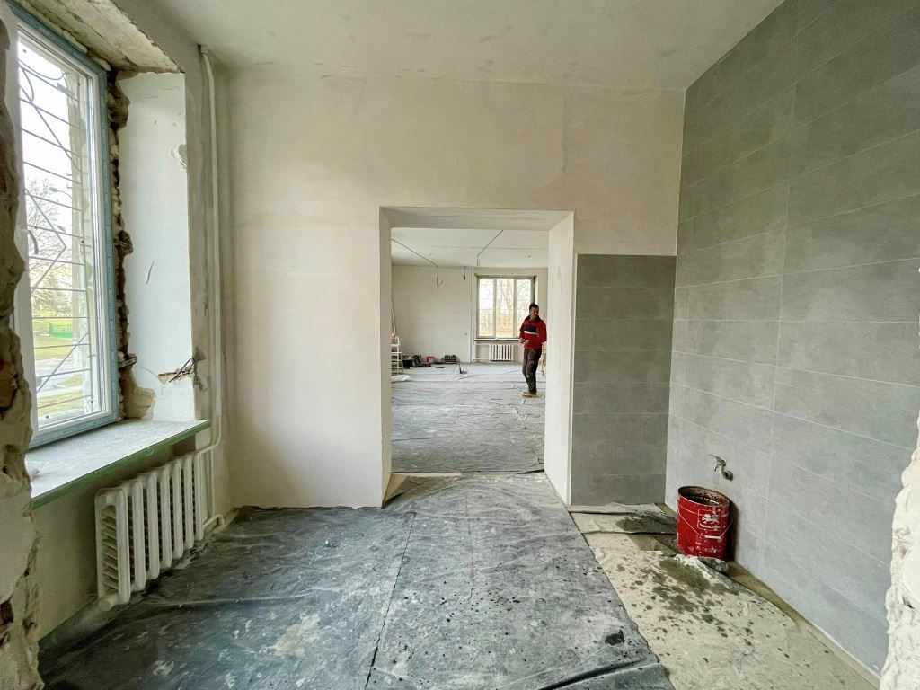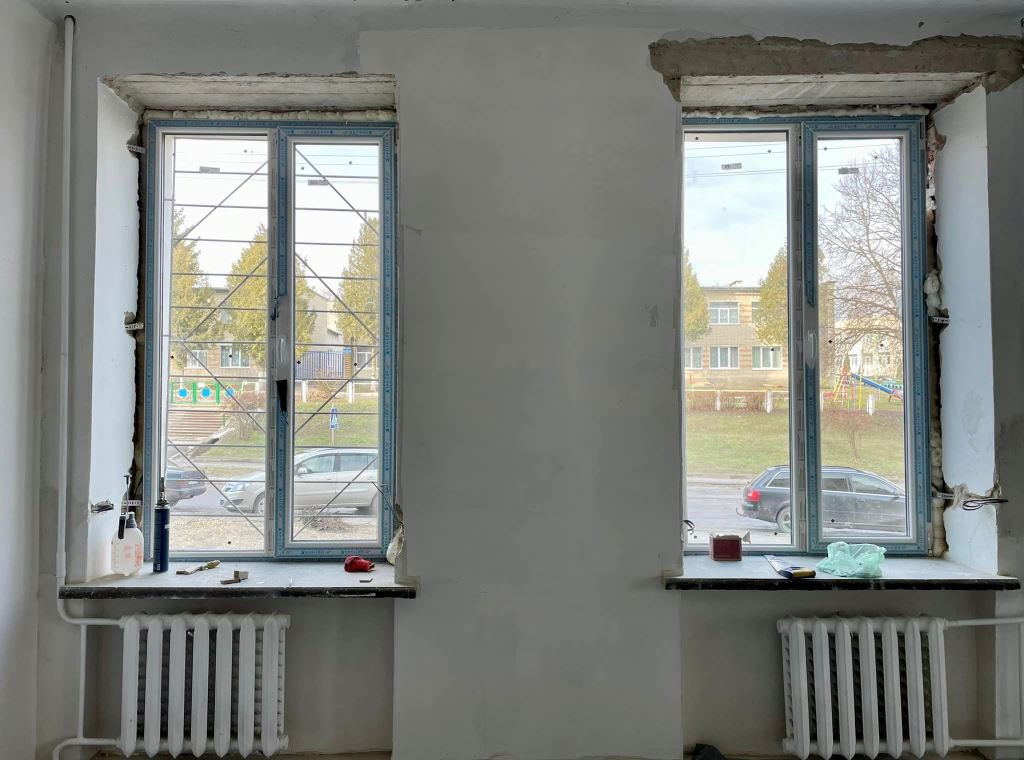 У приміщенні вже замінили старі деревʼяні вікна на нові пластикові. Зараз майстри працюють над обробкою відкосів. На черзі – стеля, підлога та стіни.